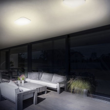 Plafonnier LED de forme carrée, en polycarbonate et finition blanche de la collection Dalia. Plafonnier ou applique murale avec IP54 élevé, parfait pour l'extérieur et pour l'installation dans les salles de bains. LED intégrée 18W et 1800Lm en 4000K, éclairage neutre.
