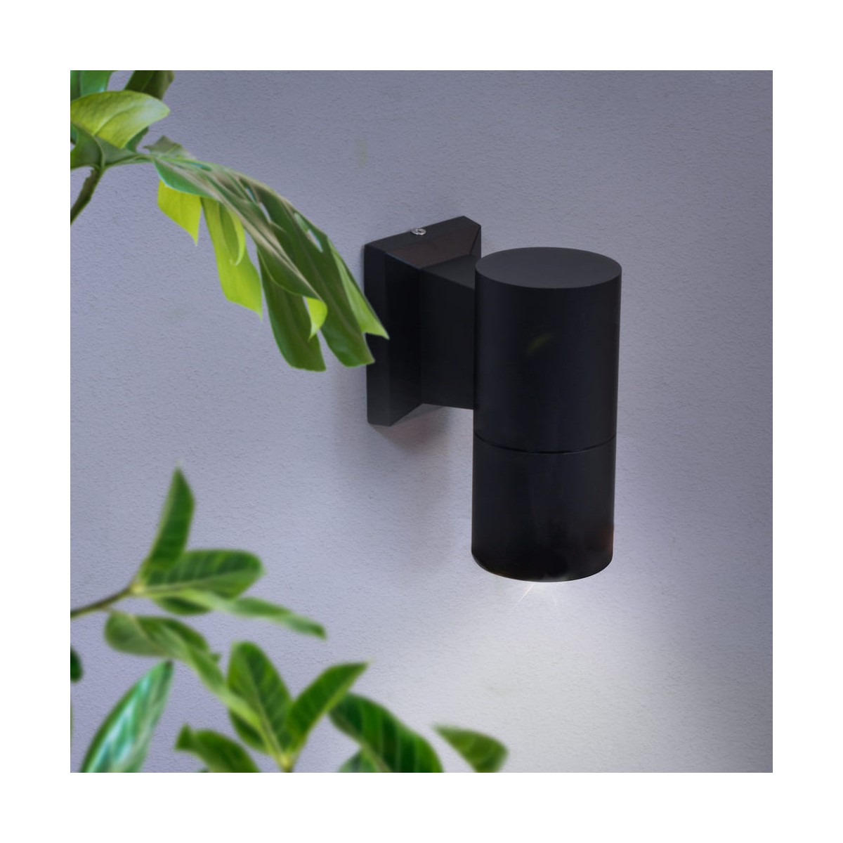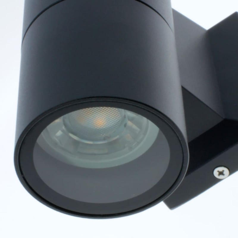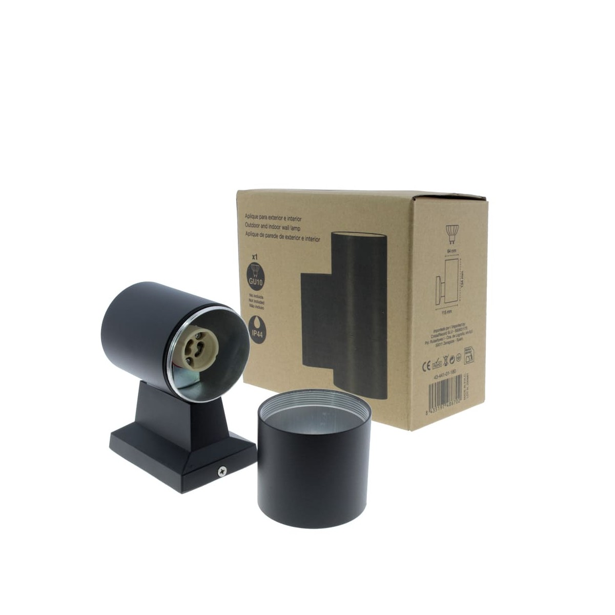 Applique avec une lumière adaptée aux intérieurs et extérieurs des terrasses, jardins et porches. Étanche avec IP54. L'Applique a une forme cylindrique, très facile à installer et pratique pour remplacer l'ampoule. Finition laquée en noir texturé. Vous pouvez trouver le modèle Relax avec une ou deux lumières. Pour les ampoules GU10. Ampoule non incluse.
