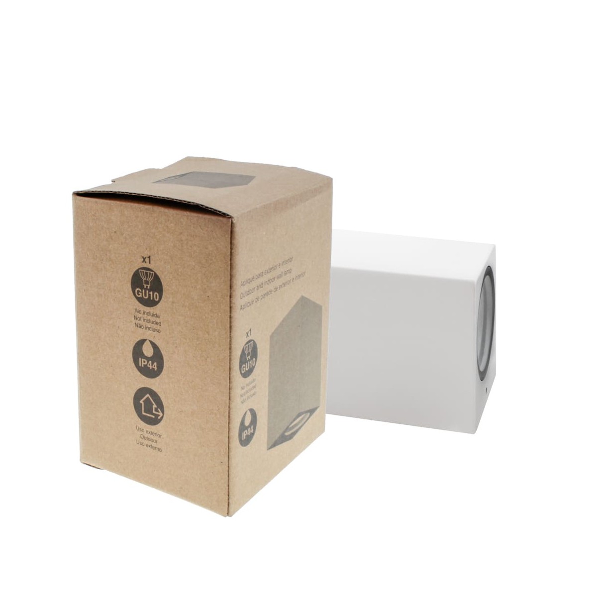 Applique de pared para éclairage de exterieur e interieur. Fabriqué en aluminio, tiene forma rectangular con acabado lacado en blanco mate. Resistente a salpicaduras con IP44. Fácil de instalar. El Applique Confo puedes encontrarlo disponible con una luz o con dos, para bombillas GU10 no incluidas.