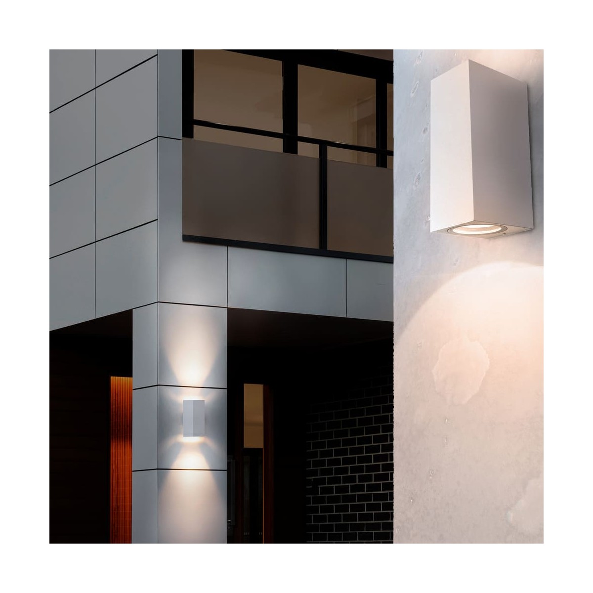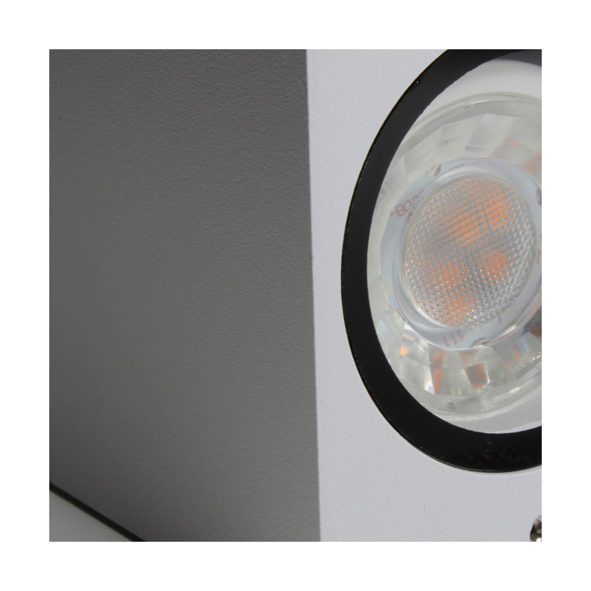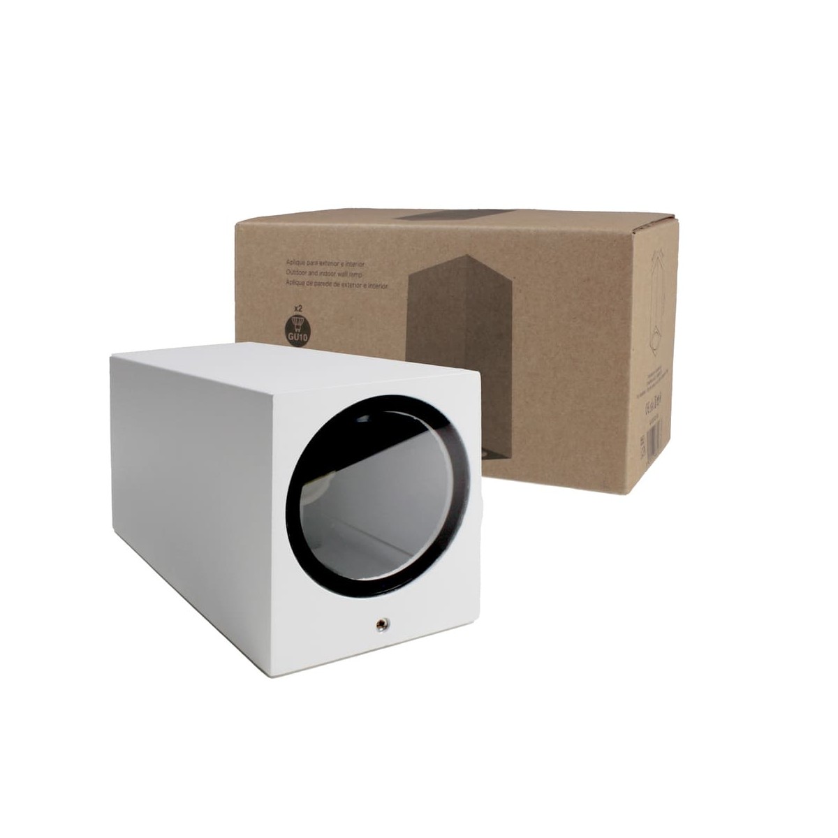 Applique pour l'éclairage extérieur et intérieur. Fabriqué en aluminium, il a une forme rectangulaire avec une finition laquée blanc mat. Résistant aux éclaboussures avec IP44. Facile à installer. L'Applique Confo est disponible avec une ou deux lampes, pour des ampoules GU10 non incluses.