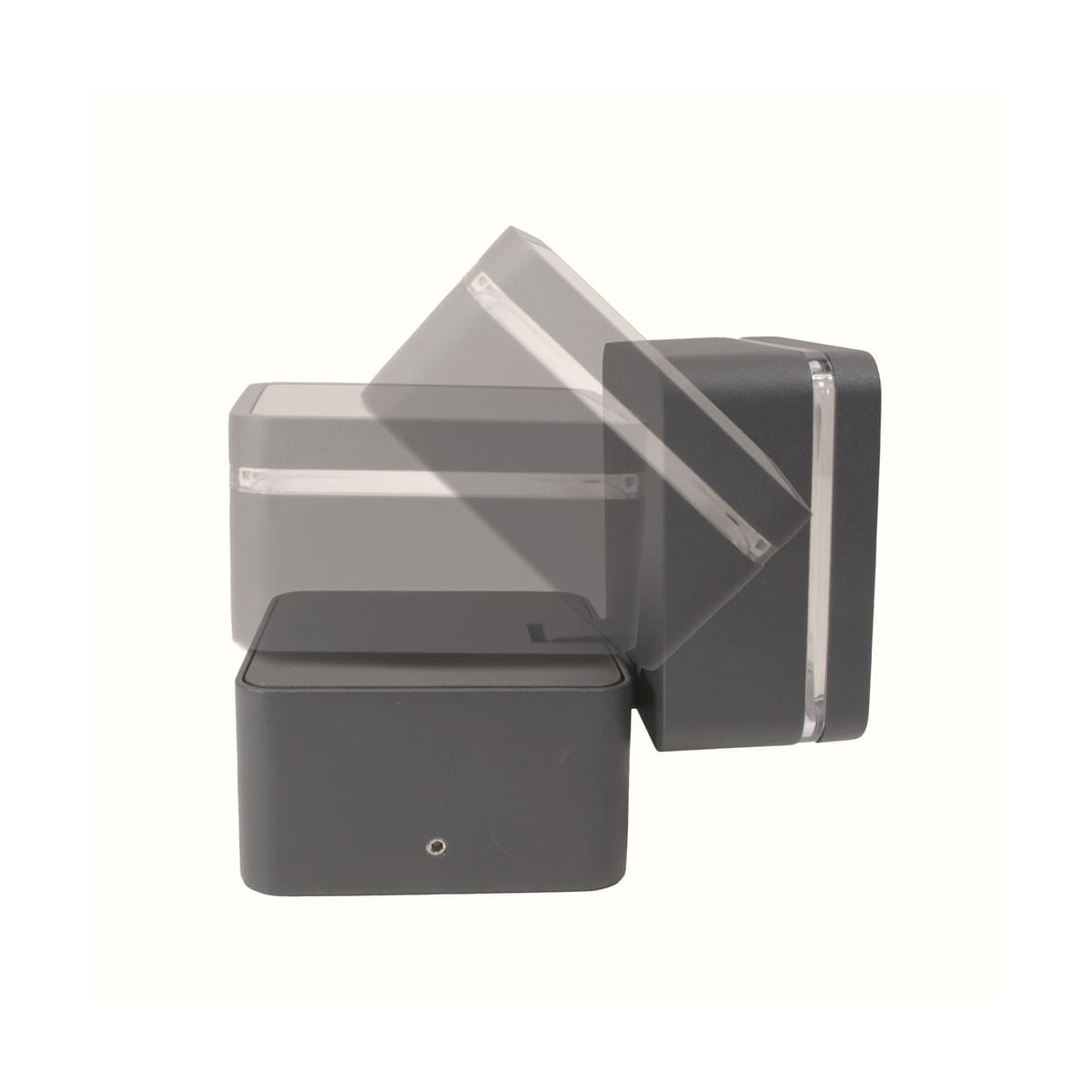Appliqué Led abatible pour exterieur avec IP54. Applique Tivo carré de 6W avec lumière neutre et flux lumineux de 450lm. Le corps de l'Applique est pliable à 45°. En raison de sa petite taille, il est parfait pour éclairer les terrasses et les passages extérieurs étroits. Vous pouvez trouver ce modèle en rond et en carré. Finition en gris anthracite.