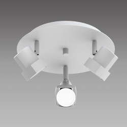 Plafonnier à trois lumières avec base ronde en finition blanc pour ampoules GU10. Ampoules non comprises. Compatible avec une ampoule LED.