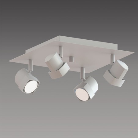 Plafonnier à 4 lumières avec base carrée de 21x21cm en finition blanche matte. Compatible avec les ampoules GU10. Ampoules non incluses. Compatible avec une ampoule LED. Les encastrements pour l'installation sont à une distance de 8cm