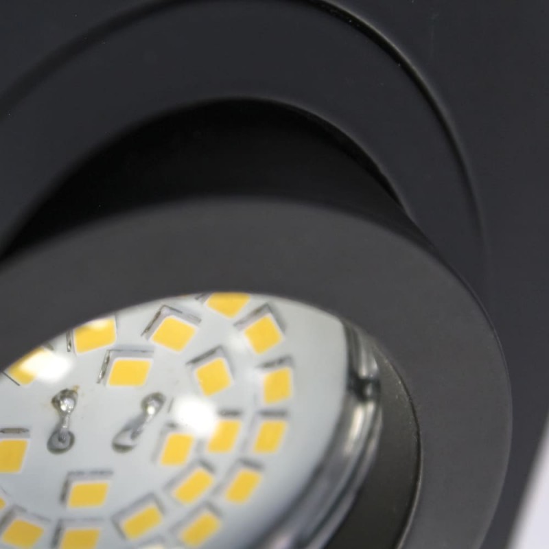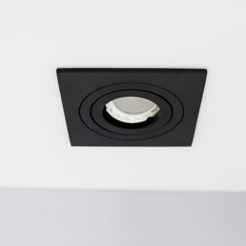 Spot encastré basculant en aluminium avec anneau intérieur en finition noir, mais il y a plus finisitions disponibles. Sa structure en aluminium mesure 93x93mm. Comprend un douille de lampe GU10.