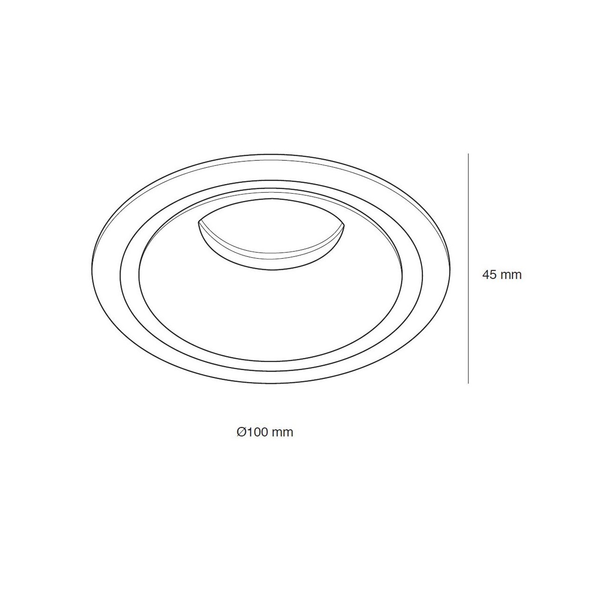 Spot encastré rond en aluminium avec une finition blanche et un anneau diffuseur décoratif en méthacrylate qui laisse passer la lumière. Avec un diamètre extérieur de 100 mm. Comprend un support de lampe GU10.