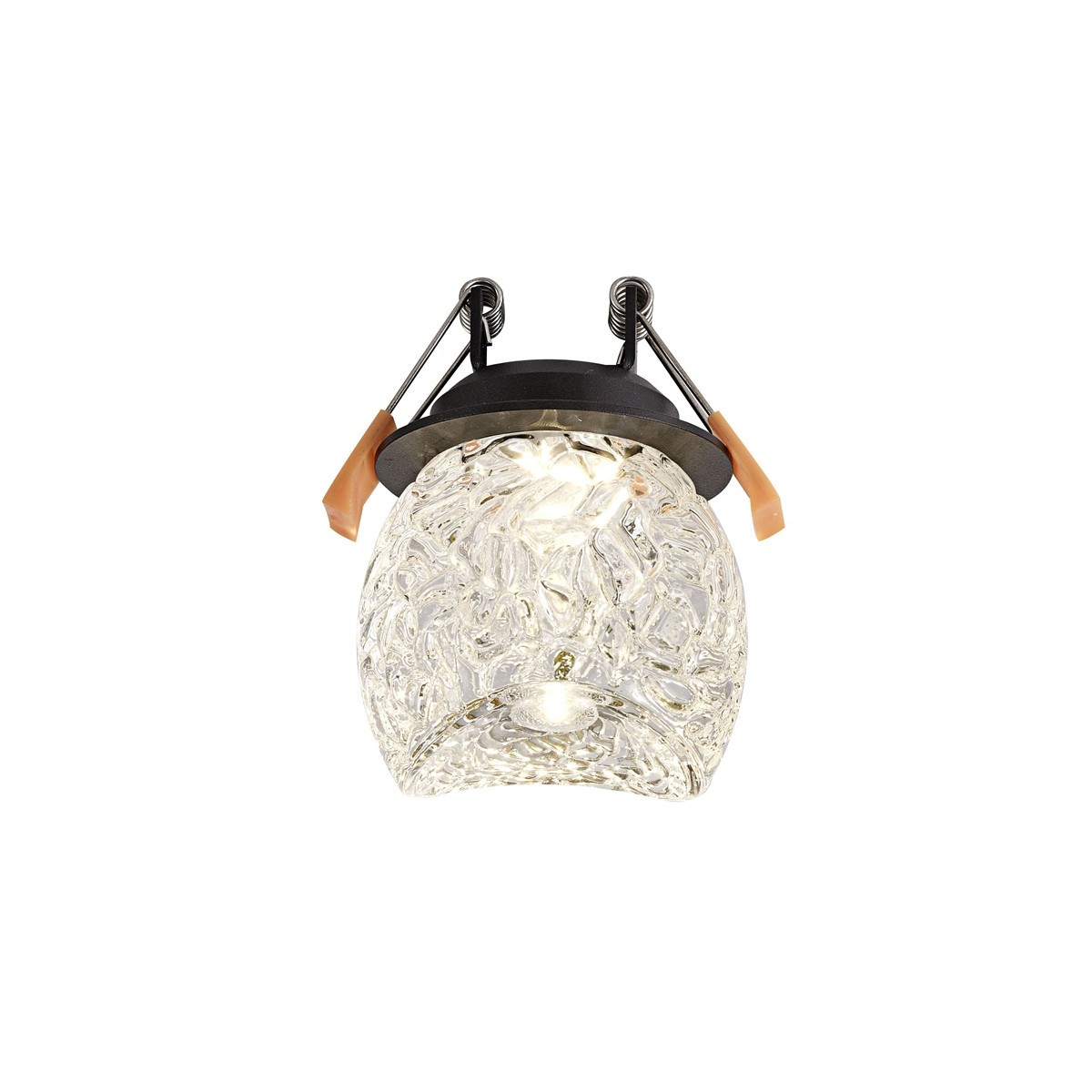 Spot encastré Fany avec éclairage LED COB 5W intégré, avec une lumière chaude et un abat-jour décoratif en verre pressé extra-clair.