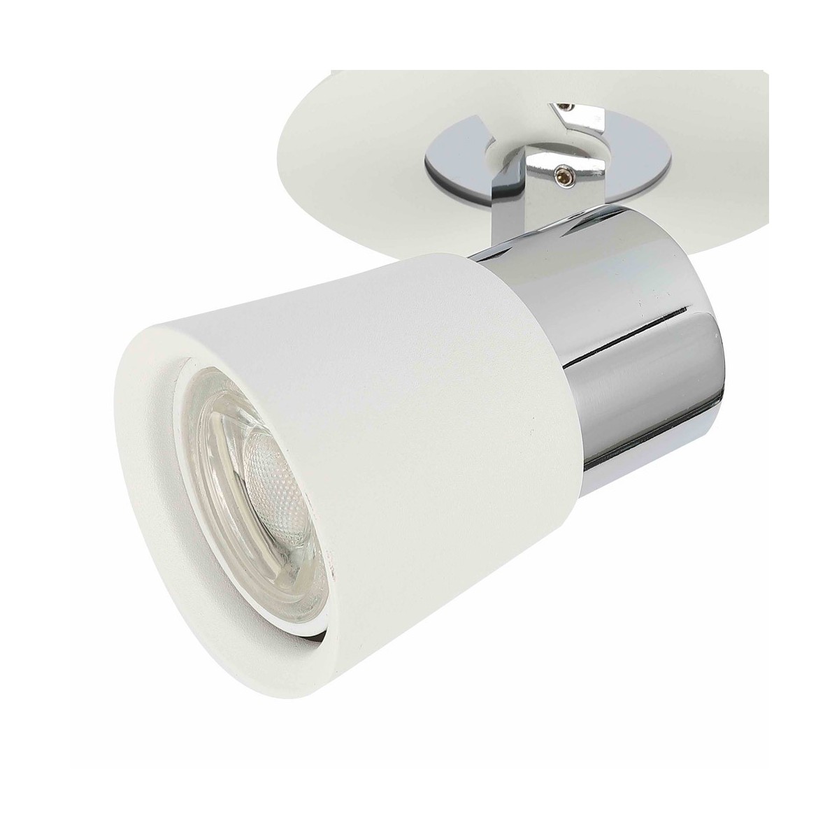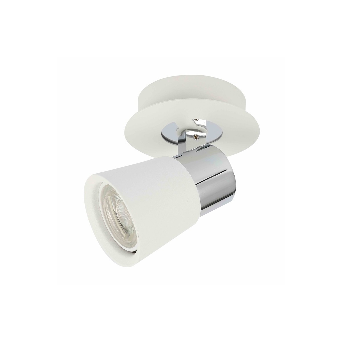 Spot basculante pour ampoule GU10 en fer, très facile à installer et à remplacer l'ampoule. Ce modèle a une finition laquée blanche avec des pièces chromées, ce qui rend ce spot parfait pour la décoration des salons et des chambres à coucher tout en dirigeant la lumière dans la direction souhaitée. Vous pouvez l'installer au plafond ou sur les murs.