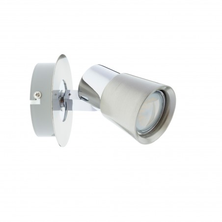 Spot basculante pour ampoule GU10 en fer, très facile à installer et à remplacer l'ampoule Ce modèle a une finition nickel avec des détails chromés qui rendent ce spot parfait pour décorer les salons et les pièces à coucher tout en dirigeant la lumière dans la direction souhaitée. Vous pouvez l'installer au plafond ou sur les murs.