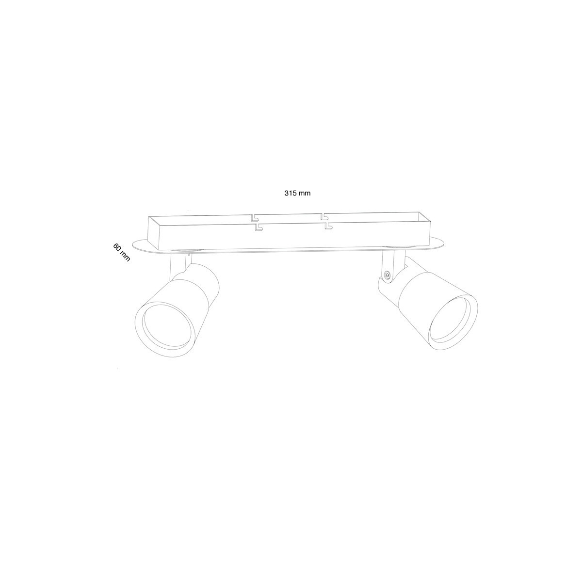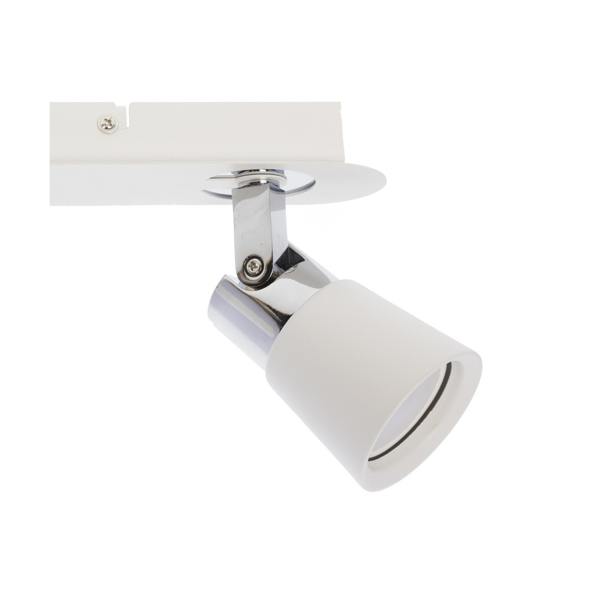 Réglette avec deux spots orientables pour ampoules GU10 en fer, très faciles à installer et à remplacer. Ce modèle a une finition laquée blanche avec des pièces chromées, ce qui rend ce réglette parfait pour la décoration des salons et des chambres à coucher tout en dirigeant la lumière dans la direction souhaitée. Vous pouvez l'installer au plafond ou sur les murs.
