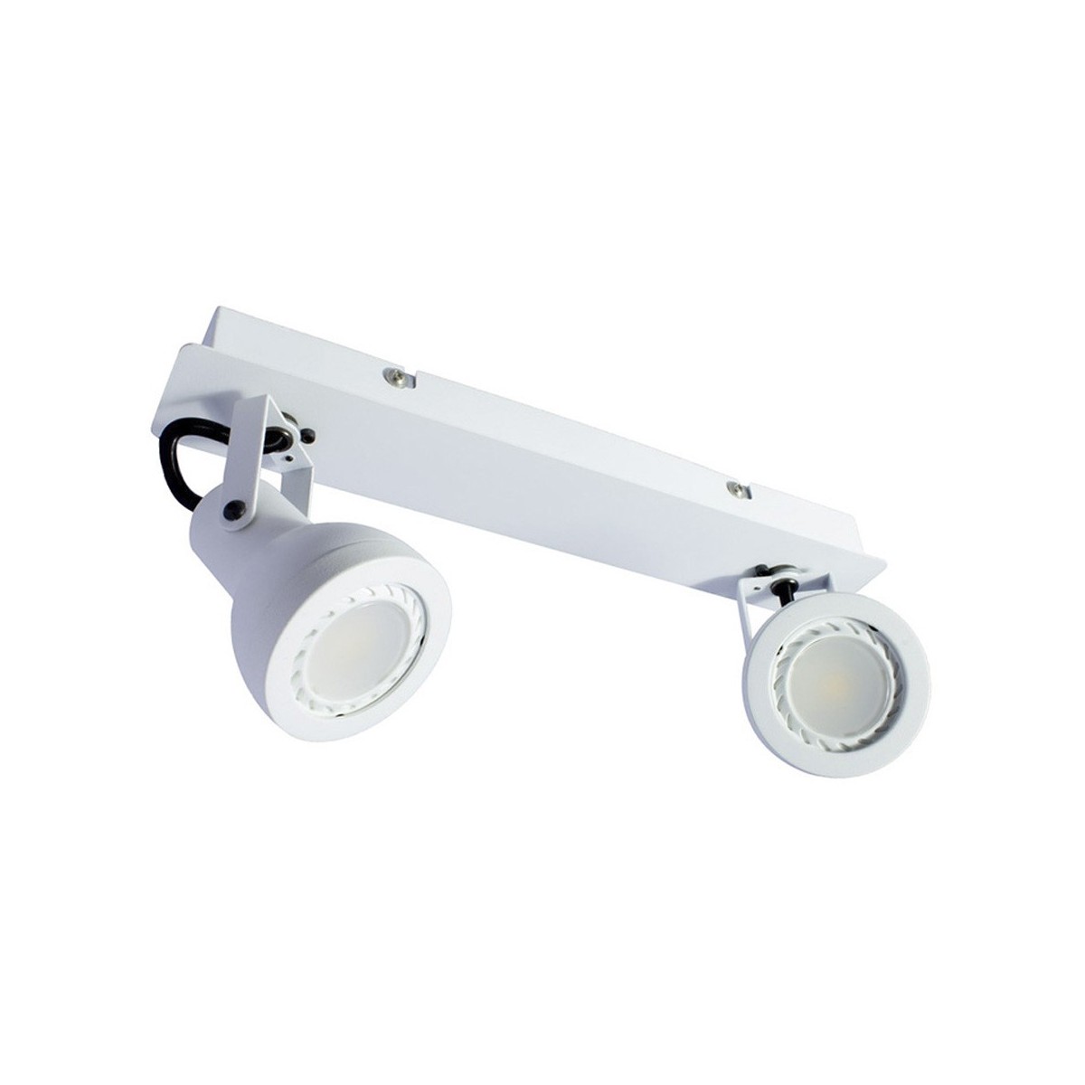 Réglette avec spots basculants en fer, finition laquée blanche. Convient pour les ampoules GU10, non incluses. Il peut être installé au plafond ou au mur, ce qui permet de diriger le faisceau lumineux vers un point précis grâce à son angle d'inclinaison et de rotation. Jolie réglette à installer dans les salons, les salles à manger et les chambres.
