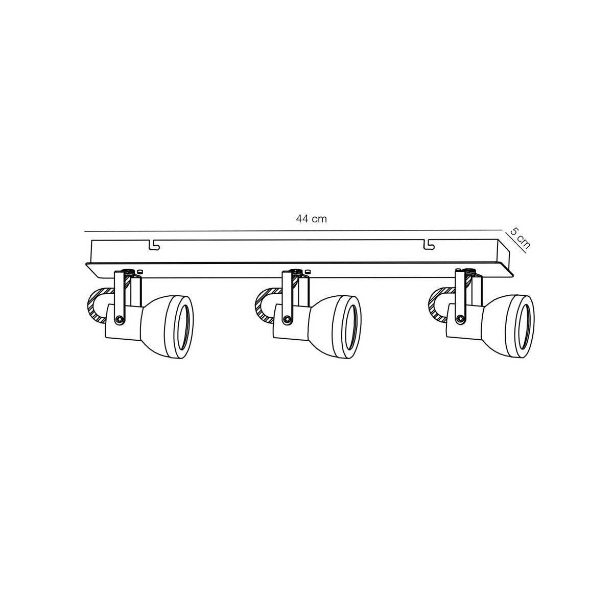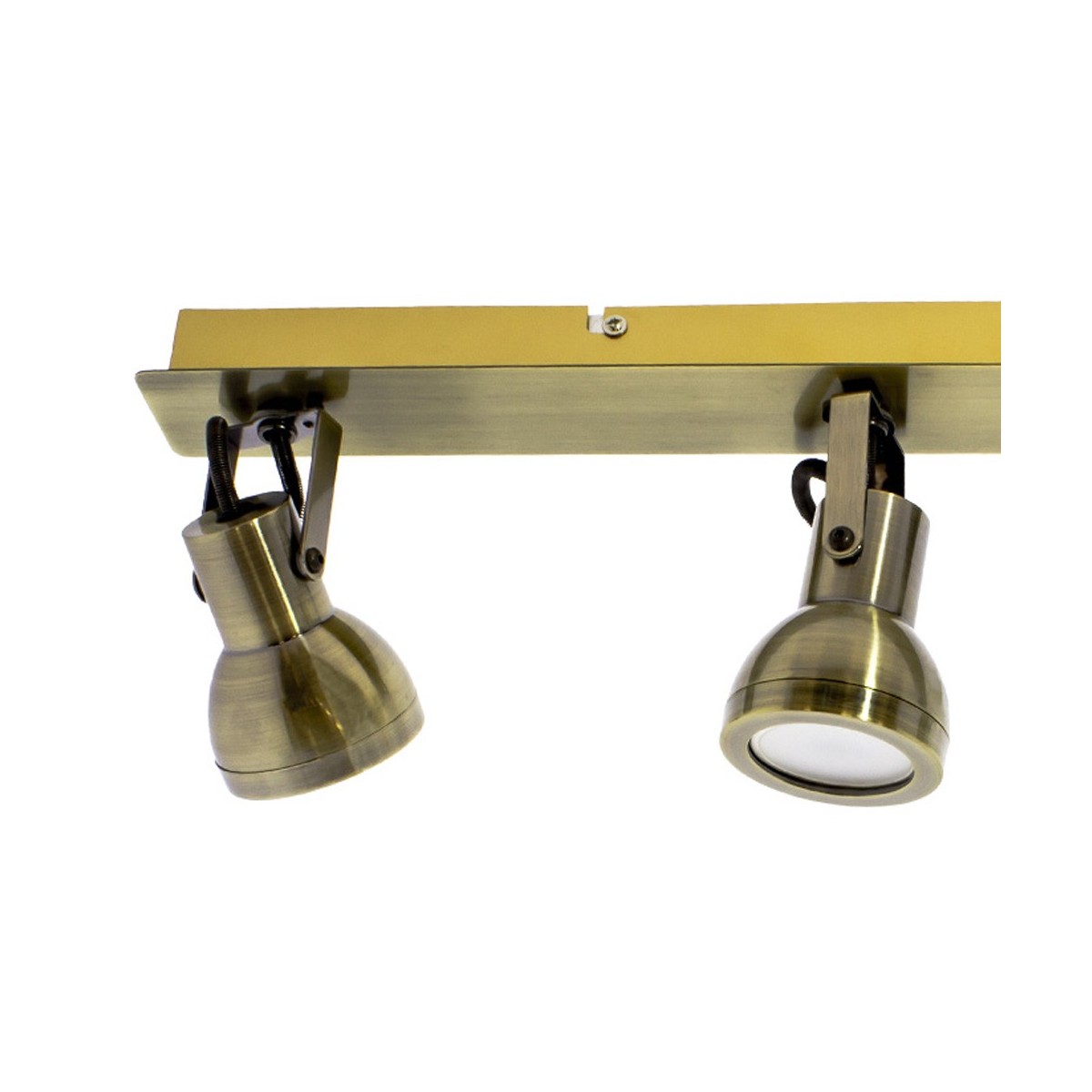 Réglette avec trois spots orientables pour ampoules GU10. Fabriqué en fer, il offre une qualité exceptionnelle, avec une finition en laque cuir. Idéal pour les salons et les salles à manger. De plus, le remplacement des ampoules (non incluses dans le produit) est très facile, il suffit de dévisser la bague du spot et une fois l'ampoule changée, la remettre en place.