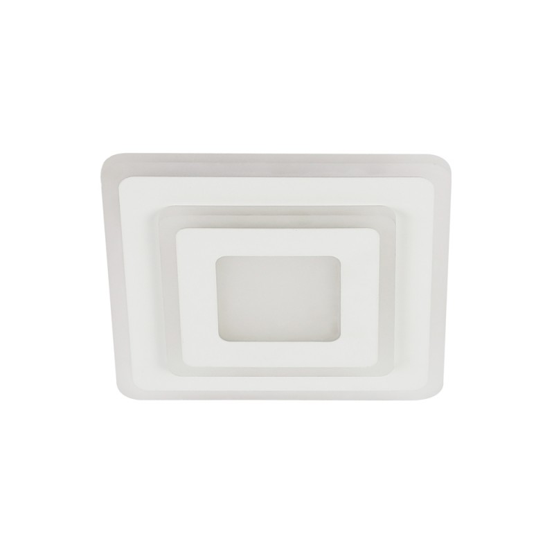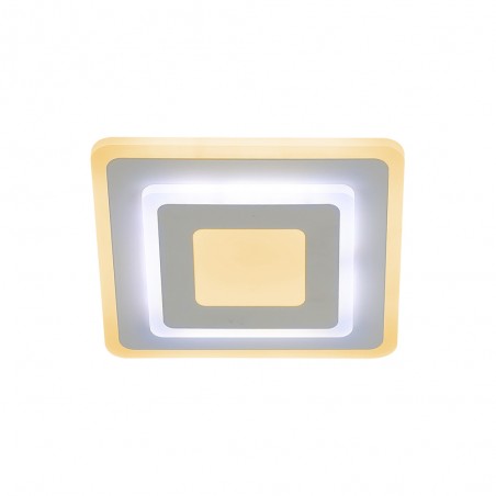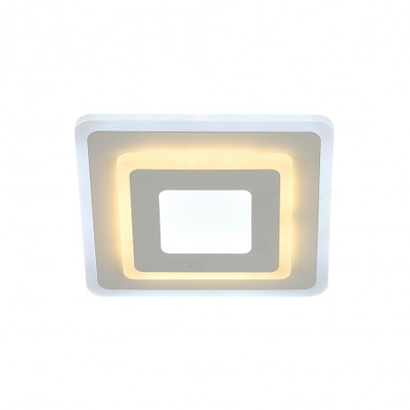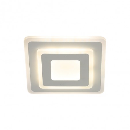 Plafonnier LED Cryn avec technologie Smart. Plafonnier carré avec variateur d'intensité intégré et trois différentes teintes de couleurs sélectionnables. Pour contrôler la lumière, il est nécessaire de connecter le plafonnier à un smartphone via une application (télécommande non incluse). Son design permet d'installer le plafonnier au plafond ou sur un mur en tant qu'applique.