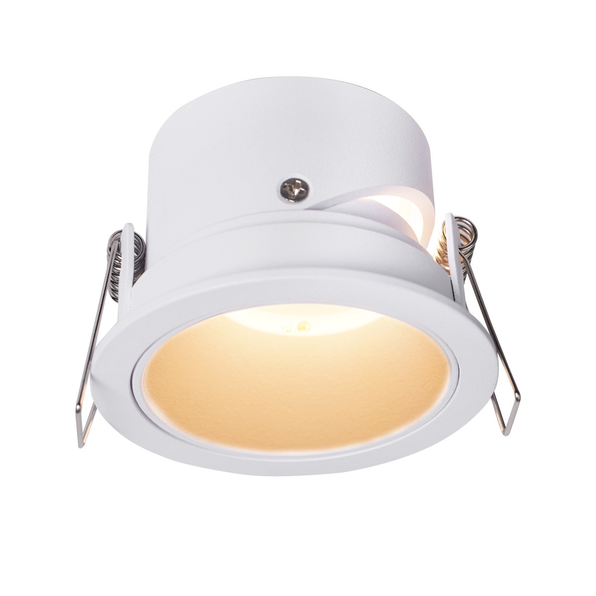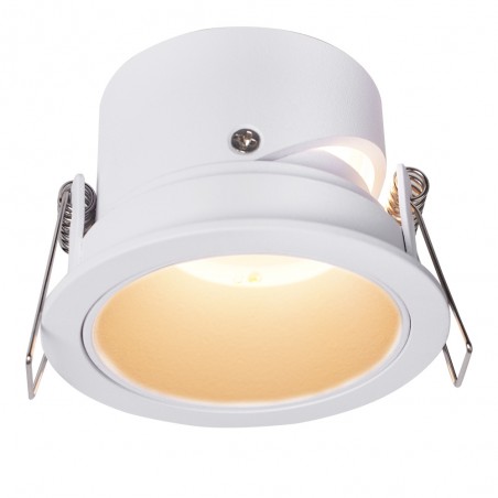 Luminaire encastré blanc rond et inclinable pour l'éclairage intérieur. Luminaire encastré blanc conçu pour les projets d'éclairage contractuels dans les maisons, les hôtels et les entreprises. Fabriqué en blanc avec une douille GU10. Point lumineux inclinable avec un angle d'inclinaison de 30º.