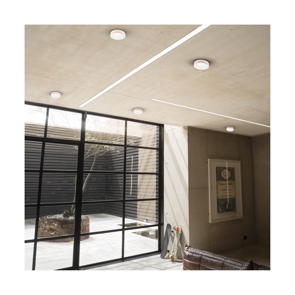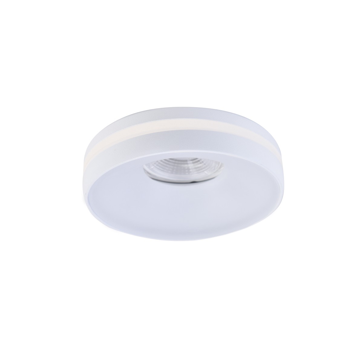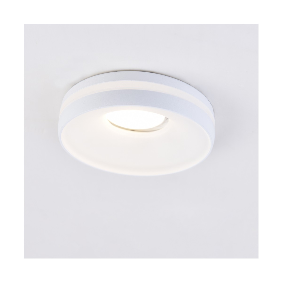 Spot encastré blanc avec point lumineux fixe. Permet d'installer une ampoule LED GU10 qui projette directement vers le bas. La lumière est projetée de manière décorative à travers le diffuseur en PC qui entoure le downlight encastré. Spot encastré très pratique à installer au plafond des salons, couloirs et autres espaces intérieurs. Trou percé : 70mm.