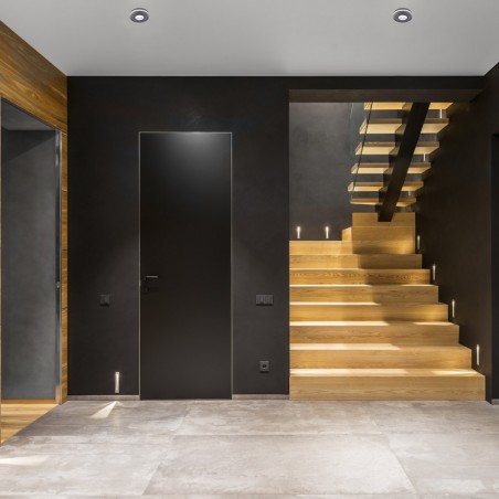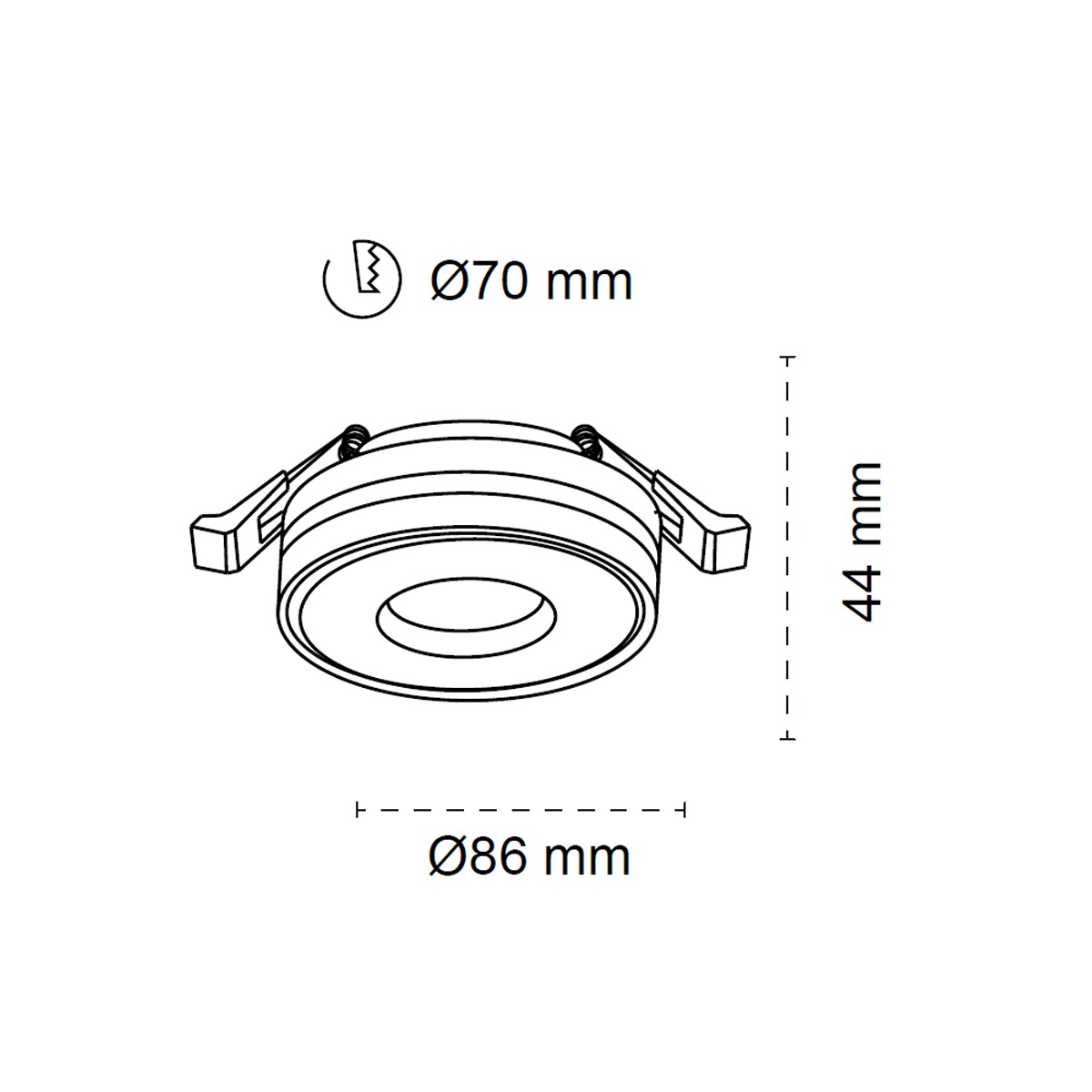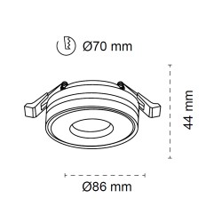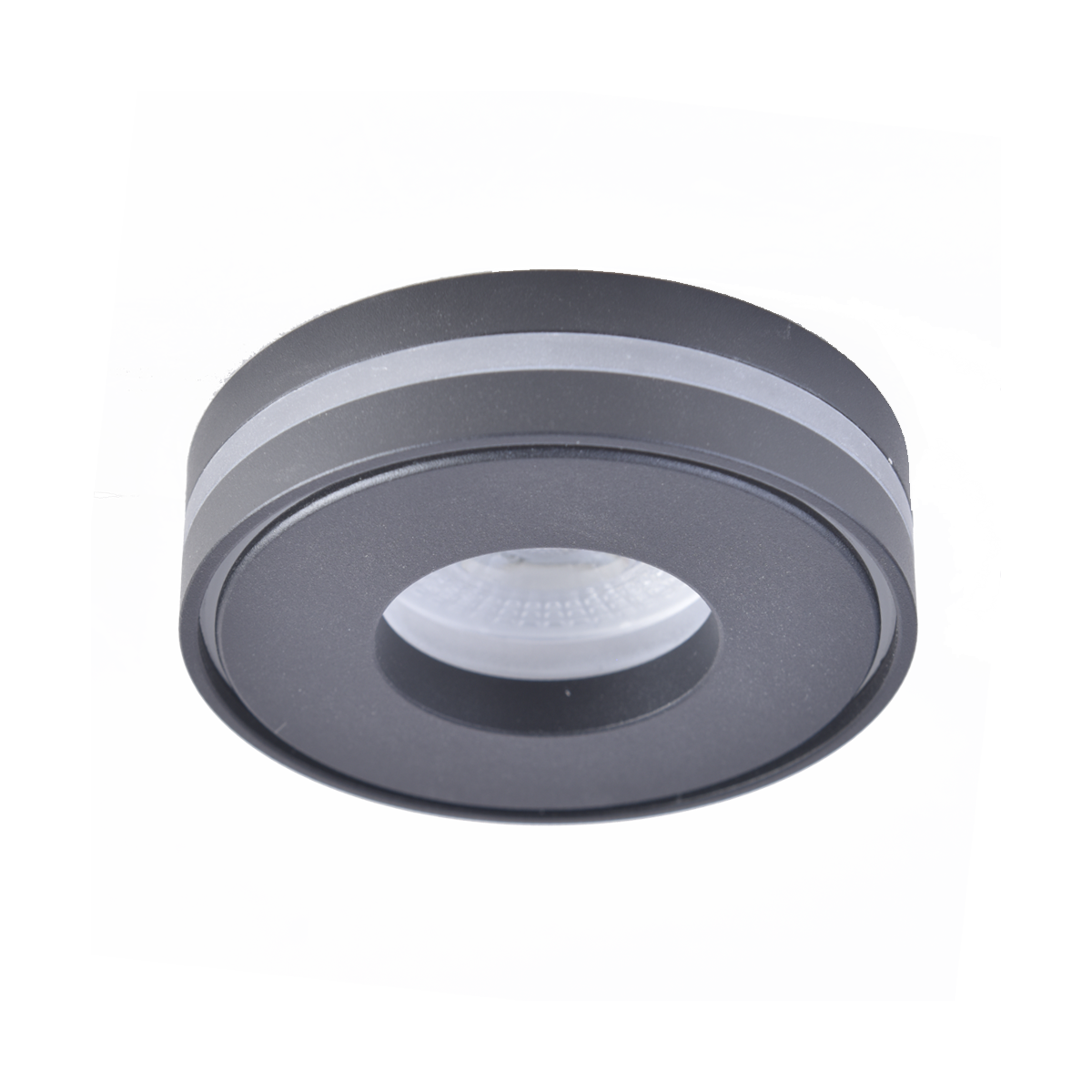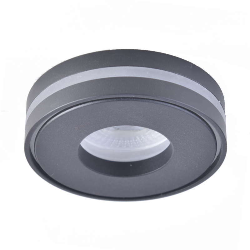 Spot encastré avec point lumineux fixe. Permet d'installer une ampoule LED GU10 qui projette directement vers le bas. La lumière est projetée de manière décorative à travers le diffuseur PC qui entoure le luminaire encastré. Spot encastré circulaire en noir, très pratique pour l'installation au plafond des salons, couloirs et autres espaces intérieurs. Trou de perçage : 70mm