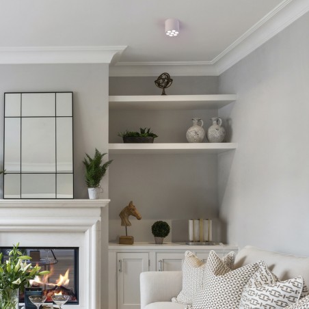 Spot de surface avec éclairage LED. Spot moderne de taille compacte conçu pour l'éclairage fonctionnel des espaces intérieurs. Plusieurs points lumineux LED projetés directement vers le bas pour éclairer une zone spécifique. Fabriqué en métal blanc de forme cylindrique. LED 6W, 570 lumens et température de couleur blanc neutre (4000K).