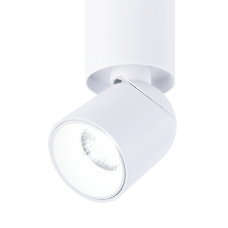 Spot de surface orientable en blanc. Spot LED orientable conçu pour éclairer un point précis grâce à la lumière ciblée qu'il émet. Le spot peut être tourné de 180º pour diriger la lumière vers le point à éclairer. Installation facile directement sur la surface. LED 8W, 900 lumens et 4000K.
