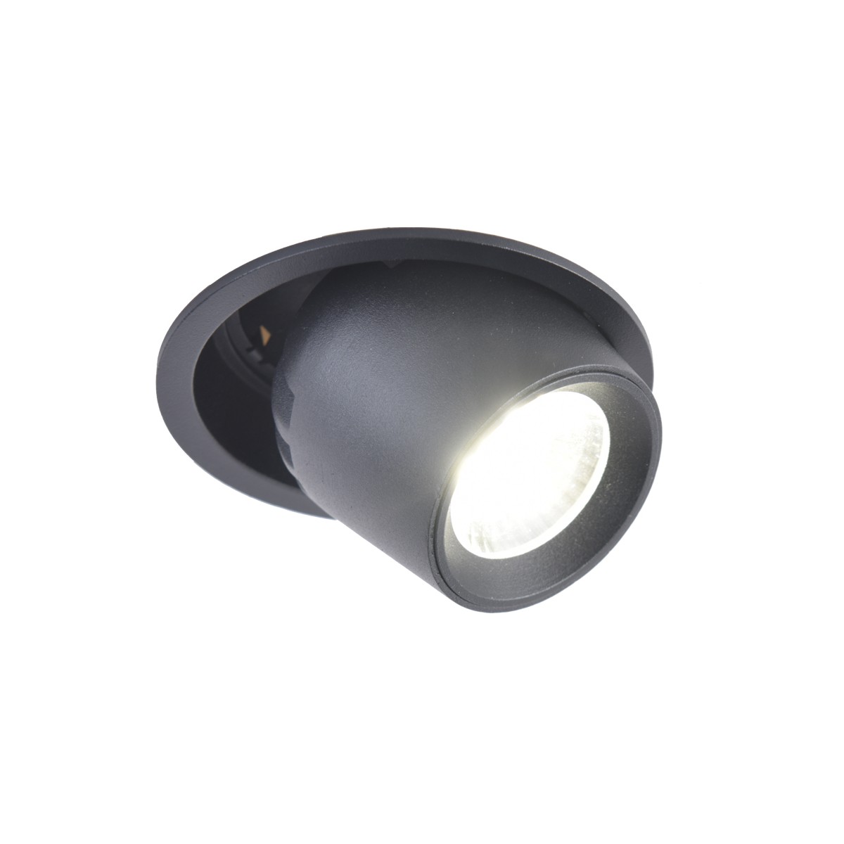 Encastré noir avec spot réglable. Encastré pratique avec un spot qui peut être dissimulé dans le plafond ou légèrement sorti. De cette manière, la lumière est projetée directement vers le bas comme un spot encastré classique ou vous pouvez orienter la lumière sur un côté. Angle d'inclinaison de 30°. Le luminaire encastré est équipé d'un éclairage LED intégré de 8W en blanc neutre. Fabriqué en métal noir.