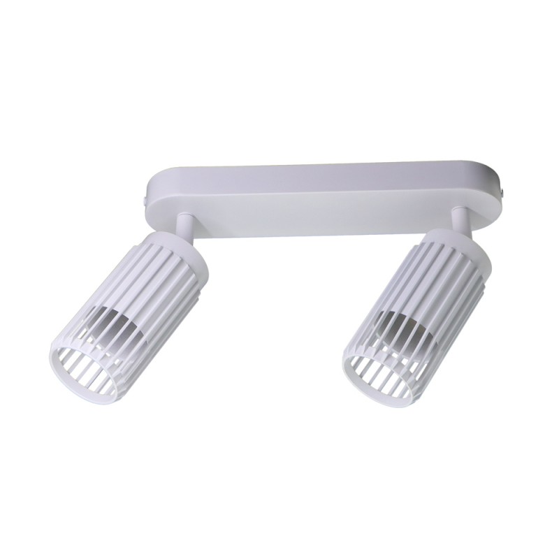 Bandeau avec deux spots orientables. Spots de forme cylindrique en aluminium blanc texturé, avec un design en relief et un fond grillagé. Cette réglette de plafond est destinée à l'éclairage décoratif et fonctionnel d'une pièce de la maison. Collection Sahara.