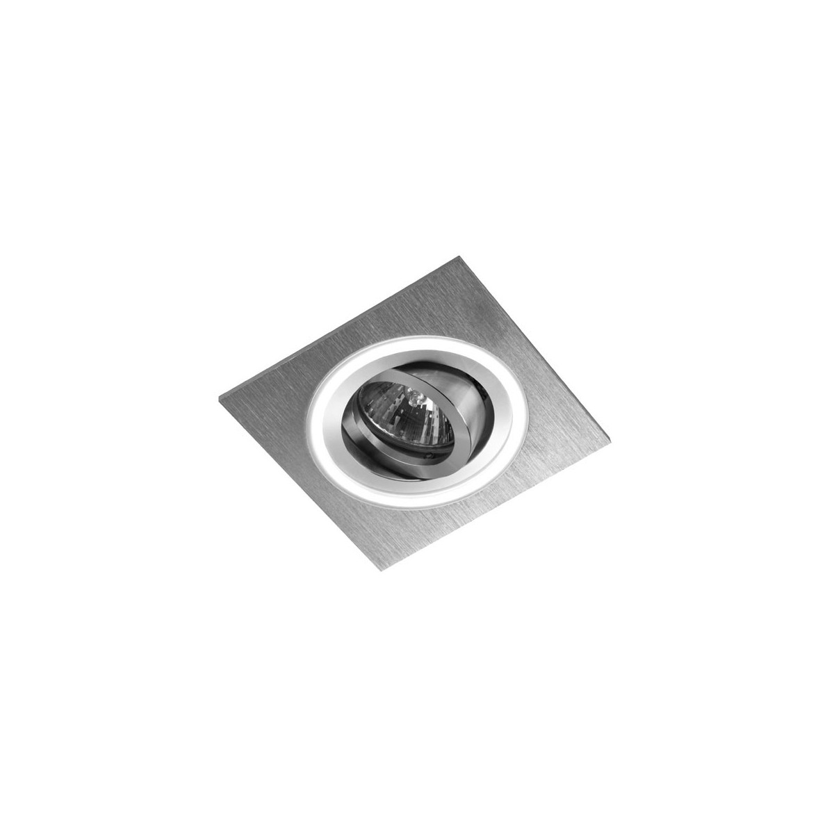 Spot encastré Aret en couleur aluminium avec leds de 2,4W 6000K. Luminaire encastré à LED de forme circulaire monté dans un cadre quadrillé d'aspect aluminium brossé. Les downlights orientables sont un moyen discret d'ajouter une touche de modernité à votre intérieur. Ce modèle possède trois lumières en une : une lumière d'ambiance froide fournie par l'anneau acrylique, une lumière directe fournie par l'ampoule LED, et un résultat d'éclairage résultant du mélange des deux. Comprend des raccords GU5.3 et GU10. Driver non inclus.