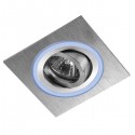 Luminaire encastré à LED de forme circulaire monté dans un cadre quadrillé d'aspect aluminium brossé. Les downlights orientables sont un moyen discret d'ajouter une touche de modernité à votre intérieur. Ce modèle possède trois lumières en une : une lumière LED d'ambiance bleue fournie par l'anneau acrylique, une lumière directe provenant de l'ampoule LED, et un résultat d'éclairage combinant les deux. Comprend un raccord GU5.3 et GU10. Pilote non inclus.
