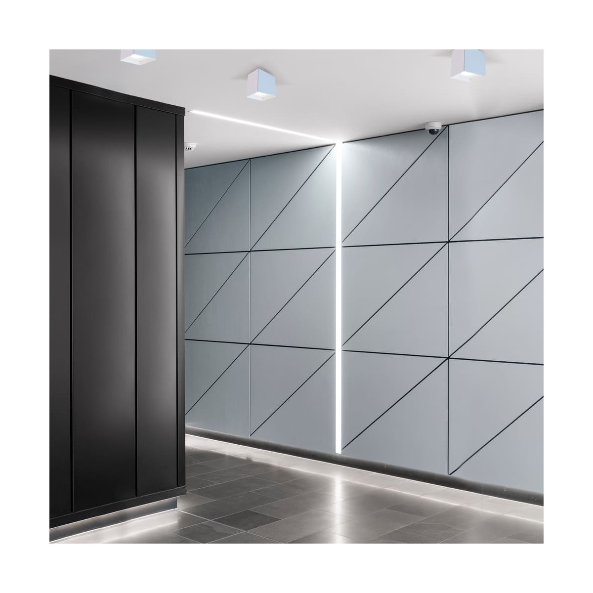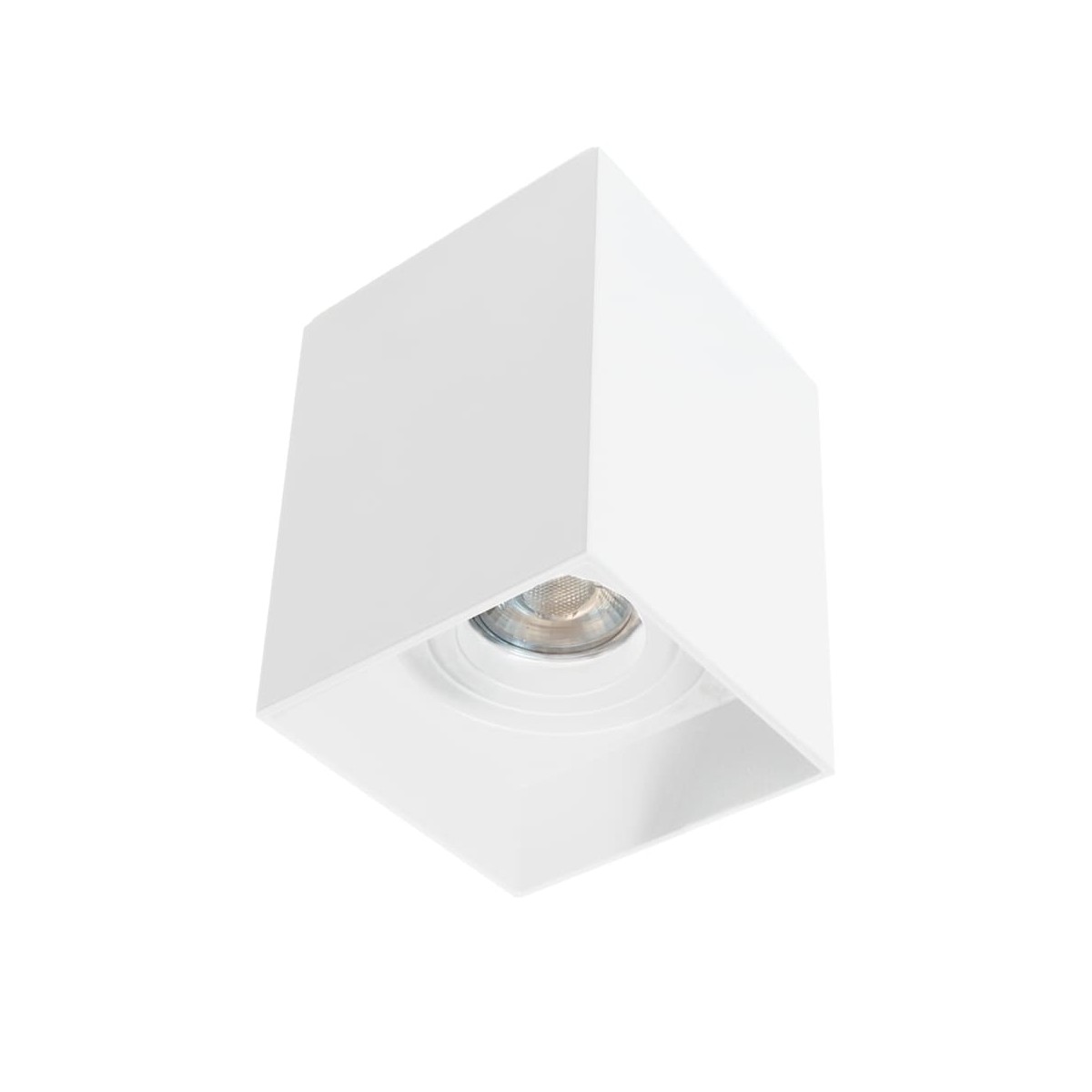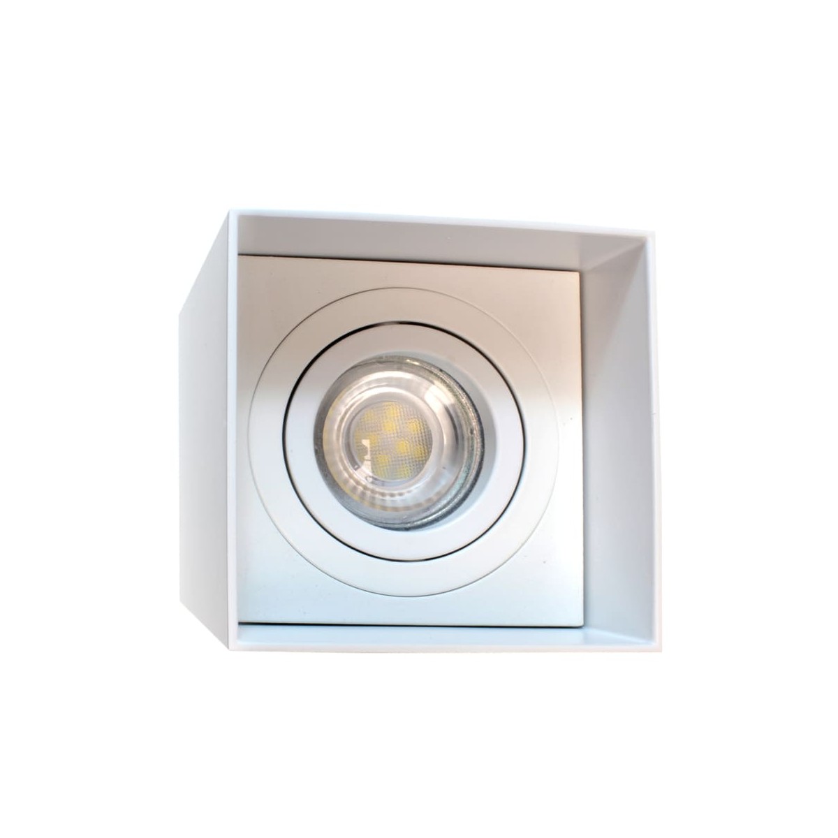 Spot de plafond carré inclinable pour ampoule GU10 (non incluse) en aluminium avec finition laquée texturée. Installation simple en surface, avec remplacement de l'ampoule par l'avant du projecteur.