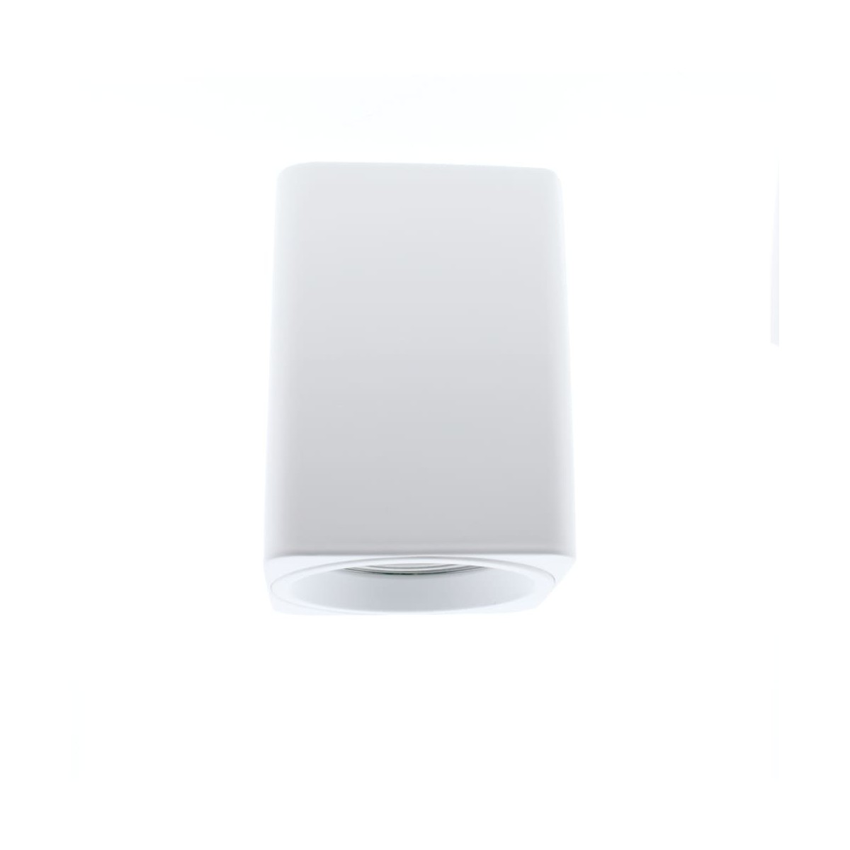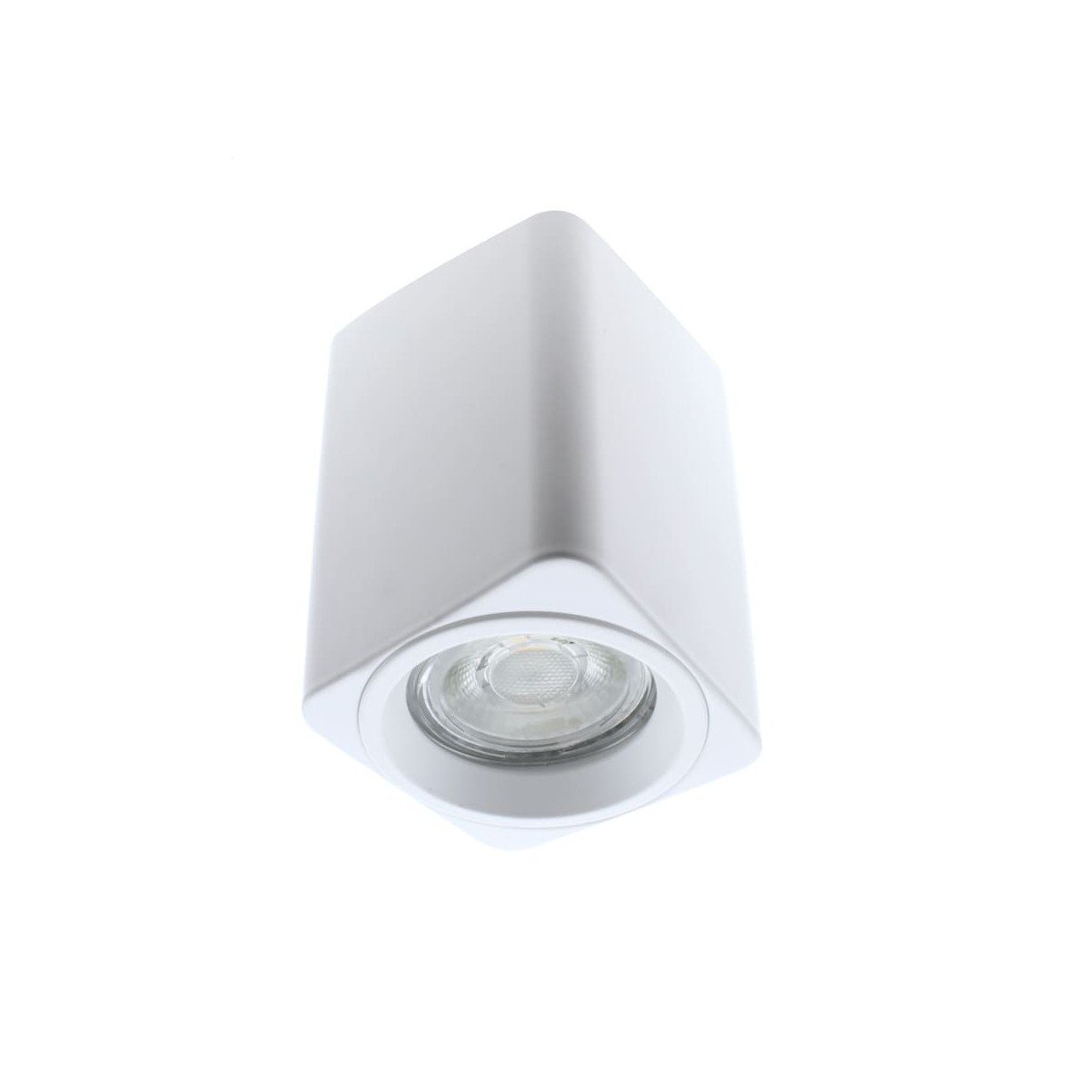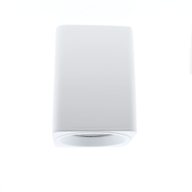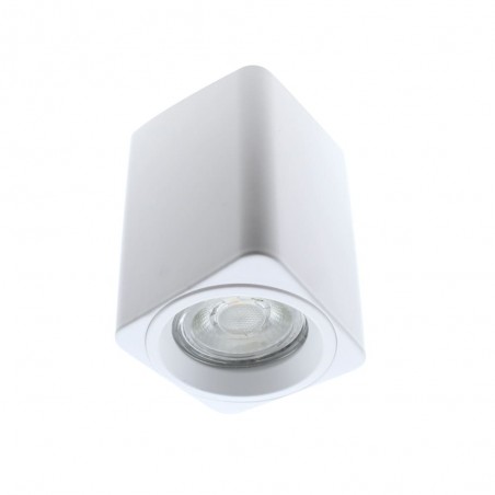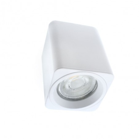 Plafonnier fixe carré pour ampoule GU10 (non incluse) en aluminium avec finition laquée texturée. Installation simple en surface, avec remplacement de l'ampoule par l'avant du spot.