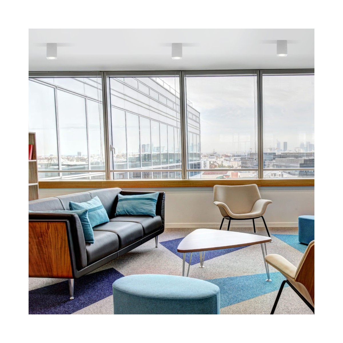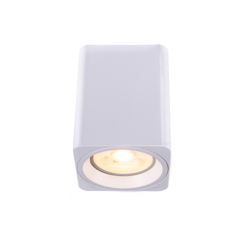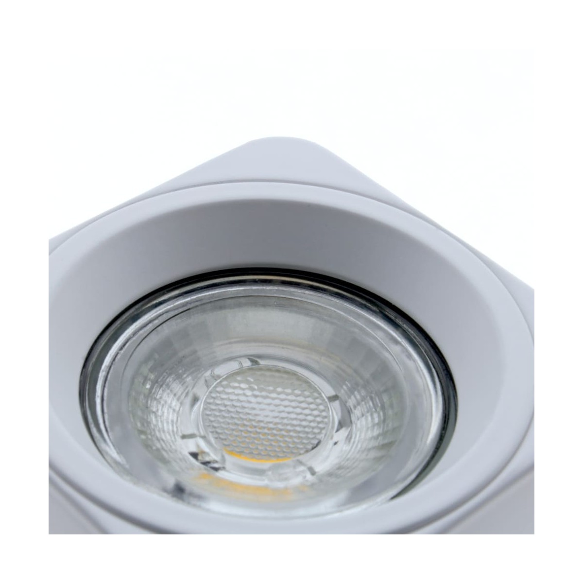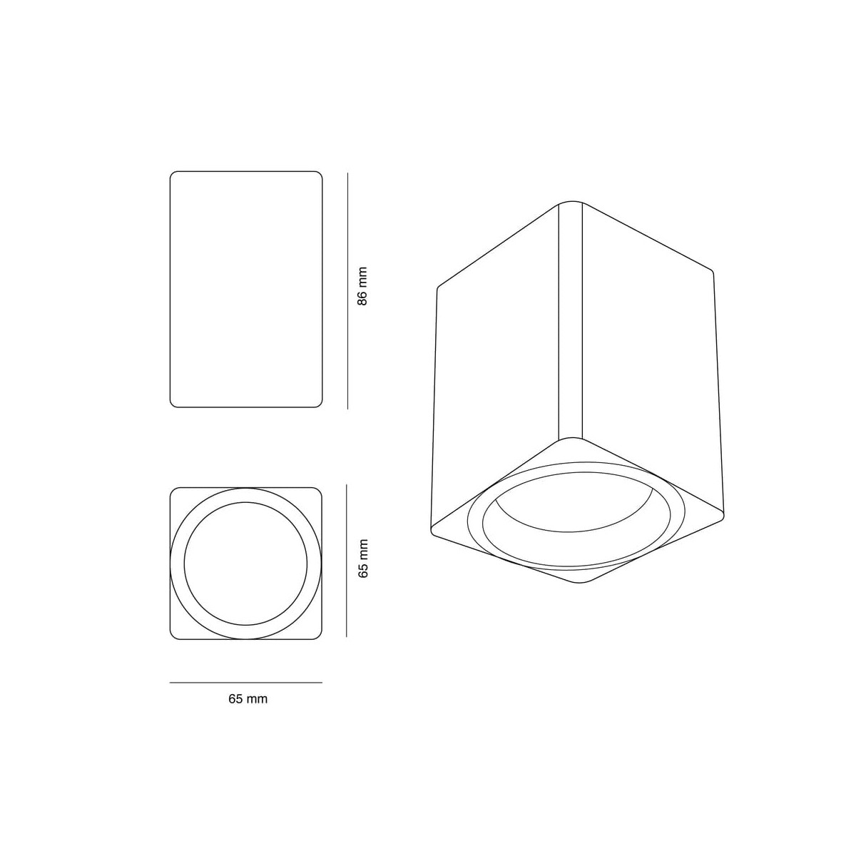 Plafonnier fixe carré pour ampoule GU10 (non incluse) en aluminium avec finition laquée texturée. Installation simple en surface, avec remplacement de l'ampoule par l'avant du spot.