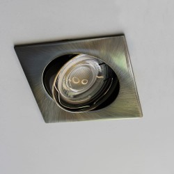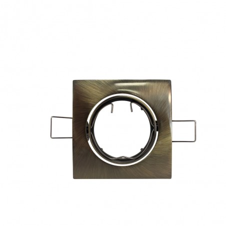 Spot encastré carré en aluminium vieil or. Et porte-lampe GU5.3. Angle d'inclinaison de 30º pour diriger la lumière au point désiré. Parfait pour l'éclairage des couloirs, des salons, des chambres ou des magasins.