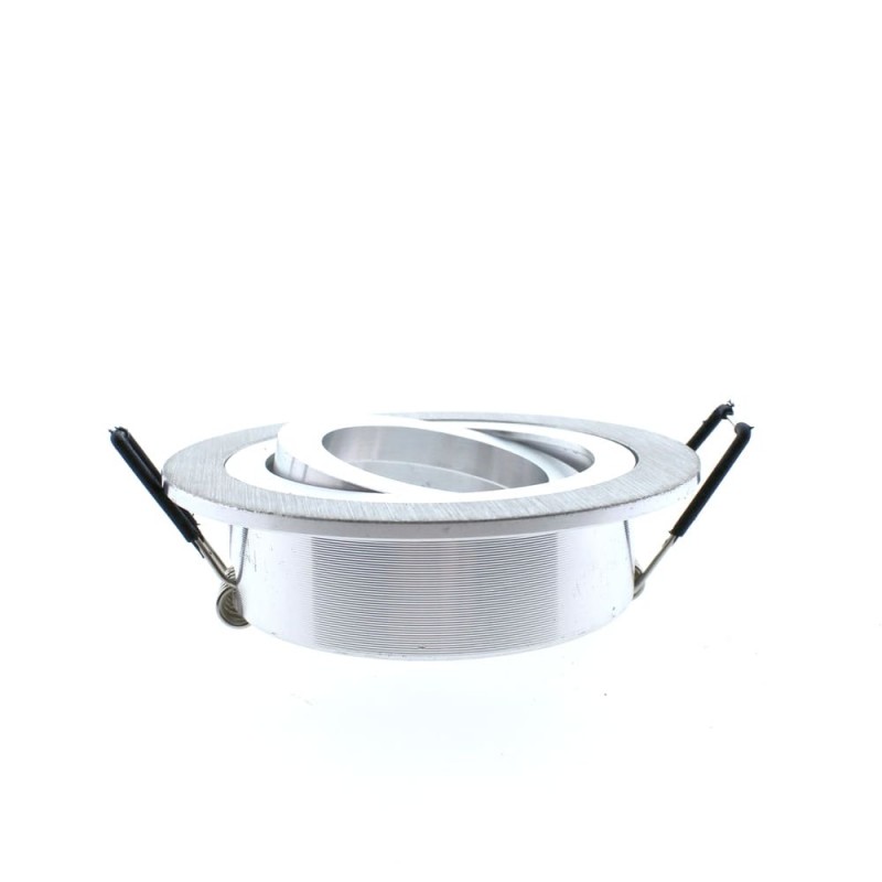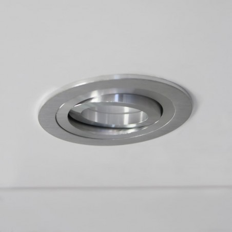 Spot encastré dans le plafond rond avec finition aluminium, avec accessoire GU10. L'ampoule peut être inclinée avec un angle de rotation de 30° pour s'adapter à la pièce selon votre goût. D'un aspect très discret, ce plafonnier serait parfait pour éclairer les couloirs, les salons, les chambres ou les espaces commerciaux. *Ampoule non incluse
