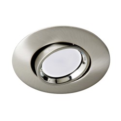 Spot rond encastré en aluminium nickel et culot de lampe GU5.3. Angle d'inclinaison de 45º, permettant de diriger la lumière vers le point désiré. Parfait pour l'éclairage des couloirs, des salons, des chambres ou des magasins.