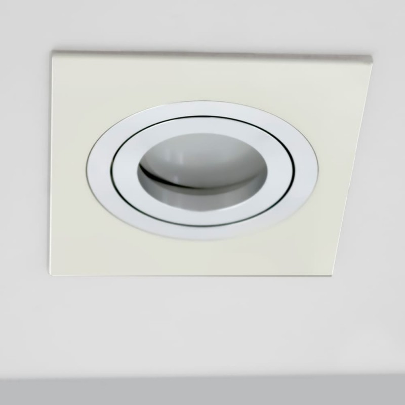 Spot encastré avec finition chrome pour le plafond carré. Comprend un support de lampe GU5.3. Angle d'inclinaison de 30º.