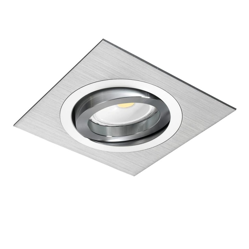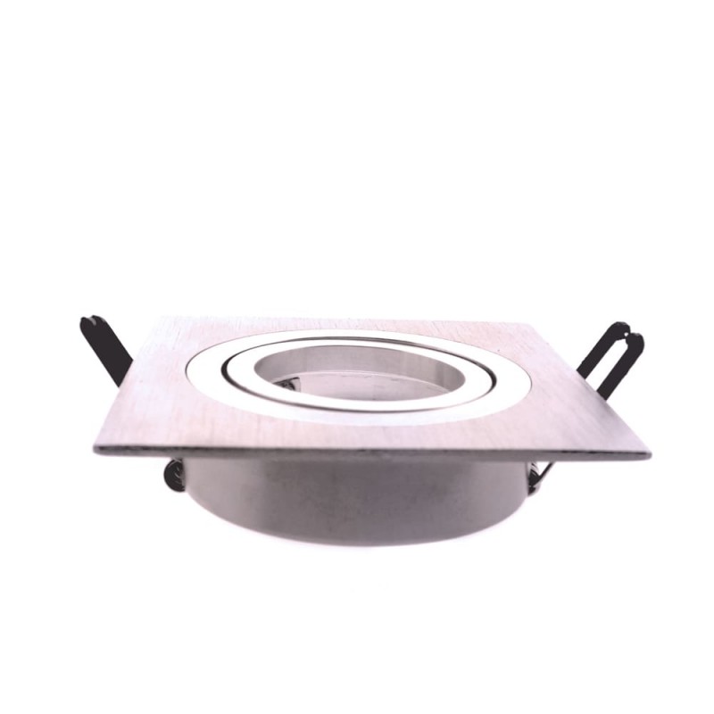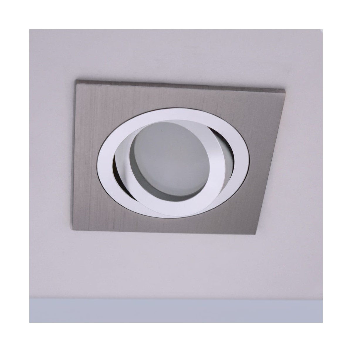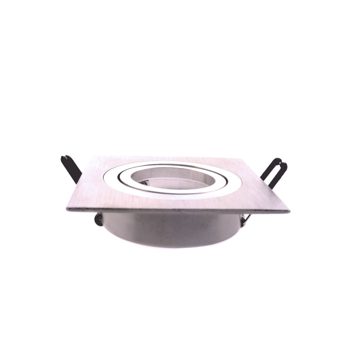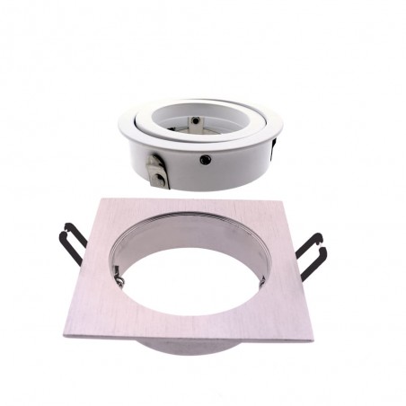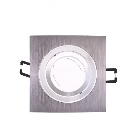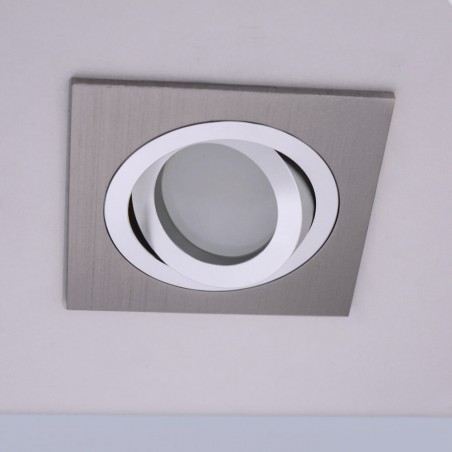 Spot encastré avec finition aluminium pour le plafond carré. Comprend un support de lampe GU5.3. Angle d'inclinaison de 30º.