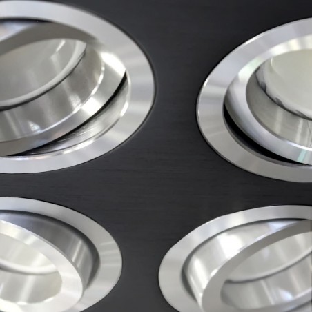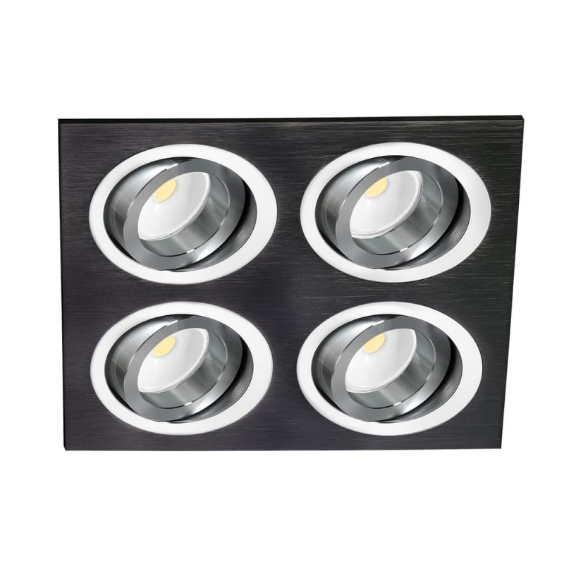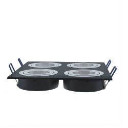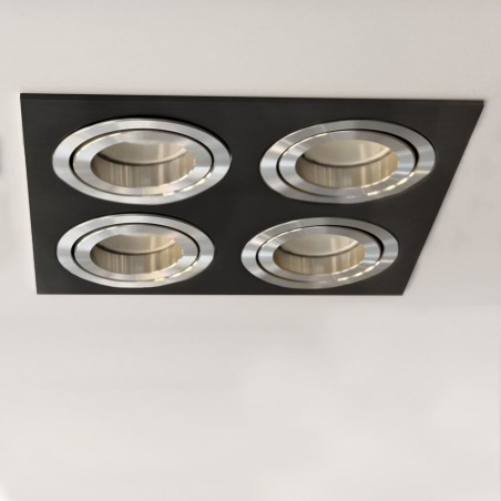 Spot encastré pour le plafond carré fini en alum-noir. Comprend un support de lampe GU5.3. Angle d'inclinaison de 30º. Parfait pour l'éclairage des couloirs, des salons, des chambres, des magasins, des boutiques de mode, des restaurants, etc...