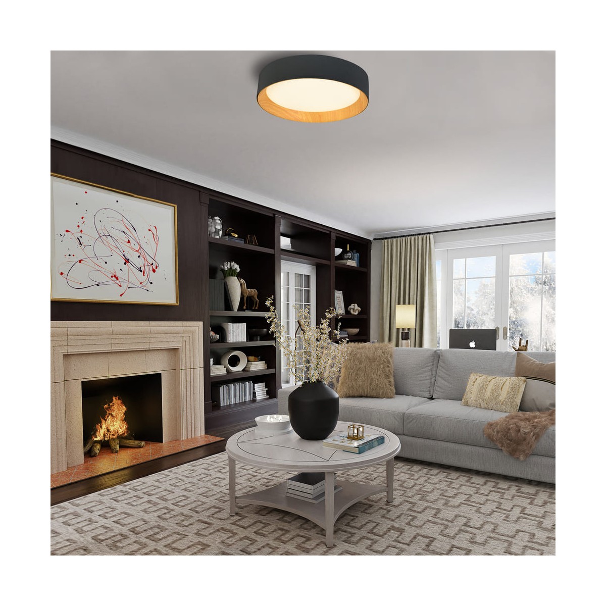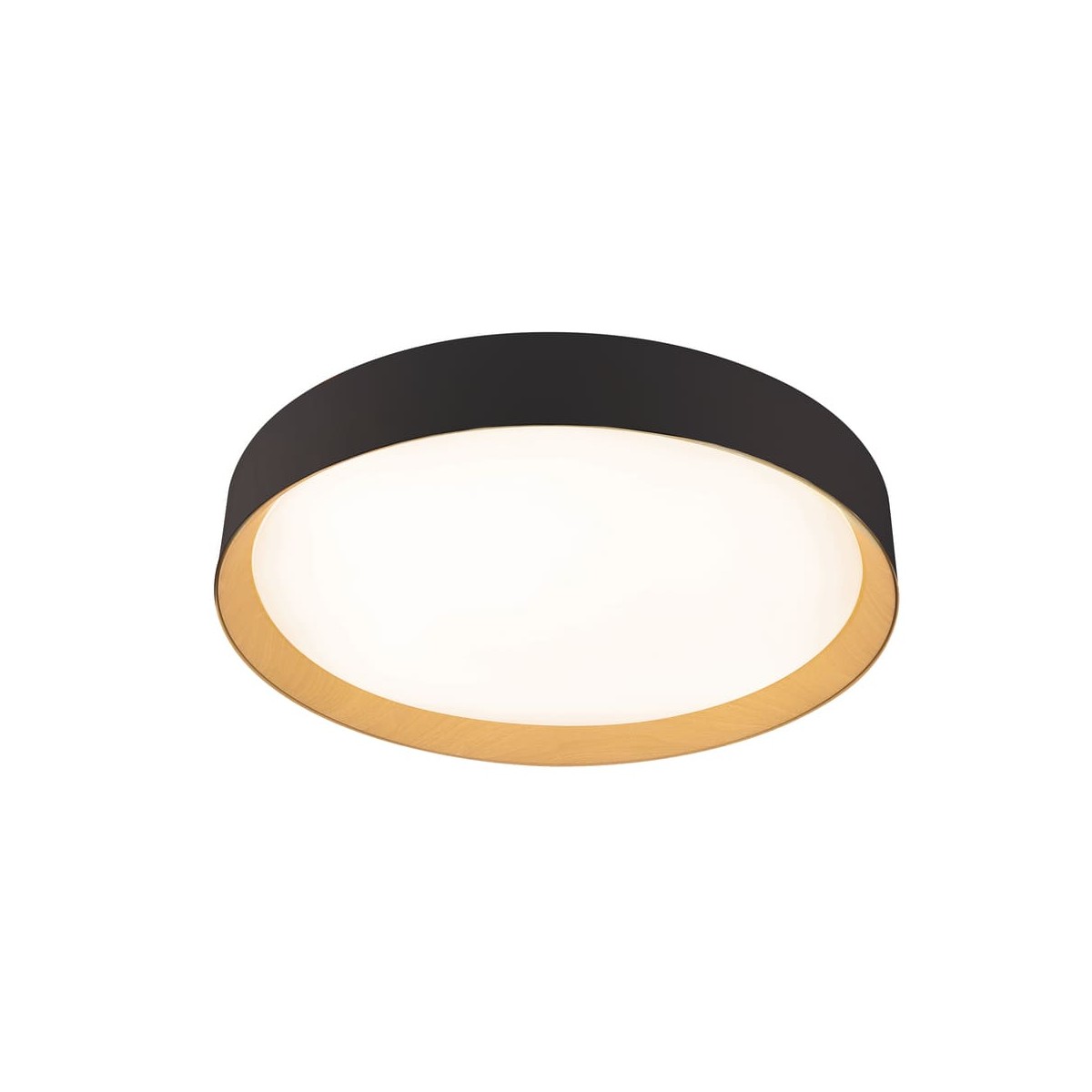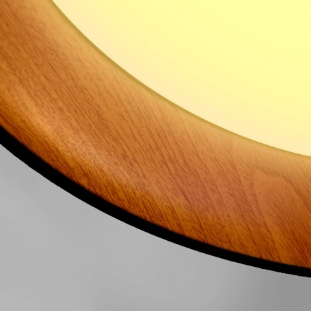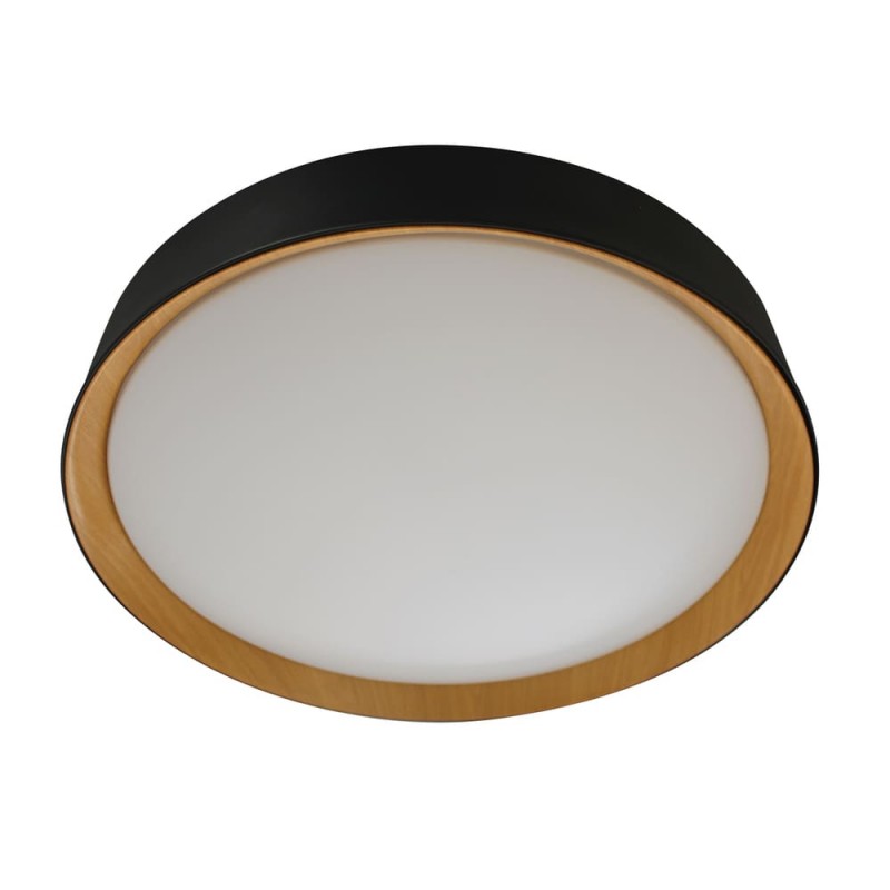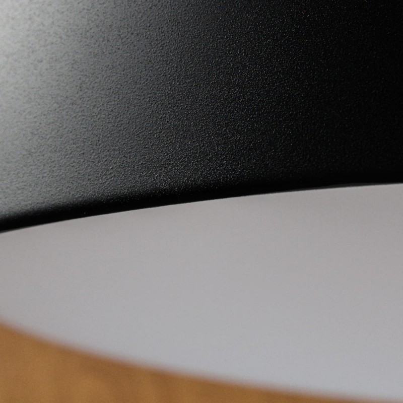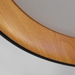 Plafonnier avec éclairage LED intégré dans un ton chaud. Plafonnier circulaire de style nordique conçu pour l'éclairage principal des salons et des salles à manger. L'effet bois de la partie intérieure crée un effet décoratif qui contraste avec la couleur noire de la partie extérieure du plafonnier. Le plafonnier LED Lea 72W est disponible en blanc ou en noir.