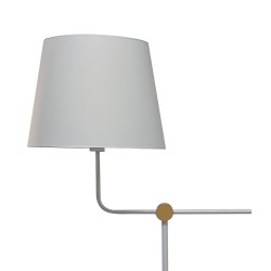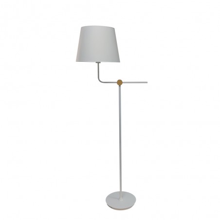 Lampadaire pour salon moderne. Design minimaliste avec structure en métal blanc et abat-jour en tissu assorti. Un petit détail doré sur la structure complète le design. Lampadaire de salon à placer à côté du canapé comme lumière d'ambiance.