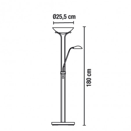 Lumière principale à LED (18W) et bras de lecture avec lumière à LED (5W). Lumière chaude 3000ºK. Parfait à placer entre les canapés, ce qui garantit une dépense minimale. DIMMABLE (l'intensité des deux lumières). Conçues comme les lampes sur pied de toute une vie mais avec la dernière technologie LED.