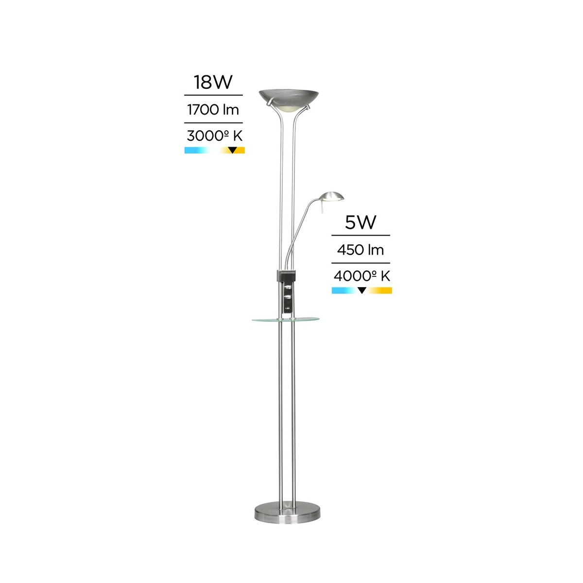 Lampadaire LED Alari 18W+5W 4000-3000K USB Nickel