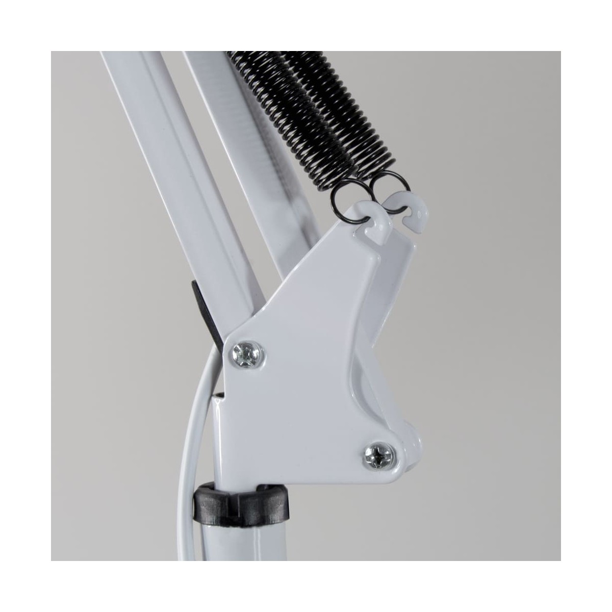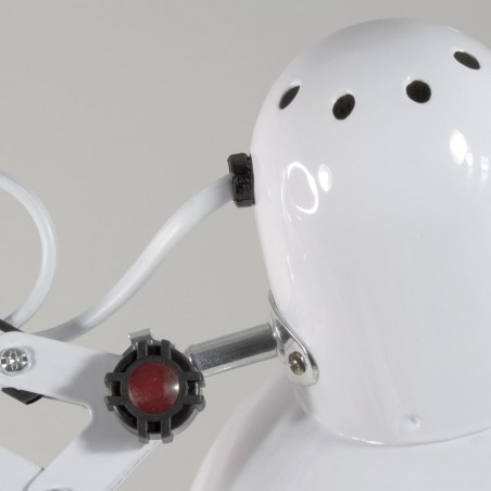 Lampadaire articulé de style classique en métal laqué blanc avec base ronde et corps réglable en hauteur. Convient aux ampoules E27. Ce lampadaire dispose d'un câble de 240 cm et d'un interrupteur au sol qui permet d'allumer la lampe avec le pied sans se baisser. Le corps et la tête sont tous deux articulés, ce qui permet de diriger la lumière vers le point souhaité, et le pied est réglable en hauteur entre 45 et 90 cm.