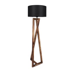 Lampadaire avec trois pieds en bois avec un design géométrique, 166cm de haut et une base de 43cm. L'abat-jour en tissu, disponible en gris clair et gris anthracite, a un diamètre de 45 cm et une hauteur de 24 cm. Il est allumé par une ampoule E27 non incluse. Le bouton marche/arrêt de la lampe est situé sur le câble.
