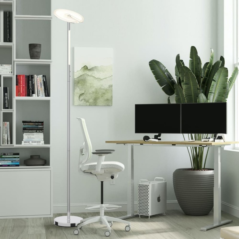Lampadaire LED avec deux lumières indépendantes à éclairage chaud avec intensité réglable. La lumière principale de 18W peut être dirigée tandis que la lumière de lecture de 4W est intégrée dans le corps de la lampe. La longueur du câble est de 1,8 mètre.