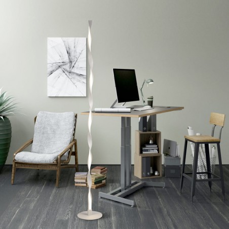 Lampadaire LED décoratif d'une puissance de 24W avec une lumière jaune chaude, parfait pour créer une lumière d'ambiance confortable. Structure en aluminium laqué blanc et diffuseur opale.