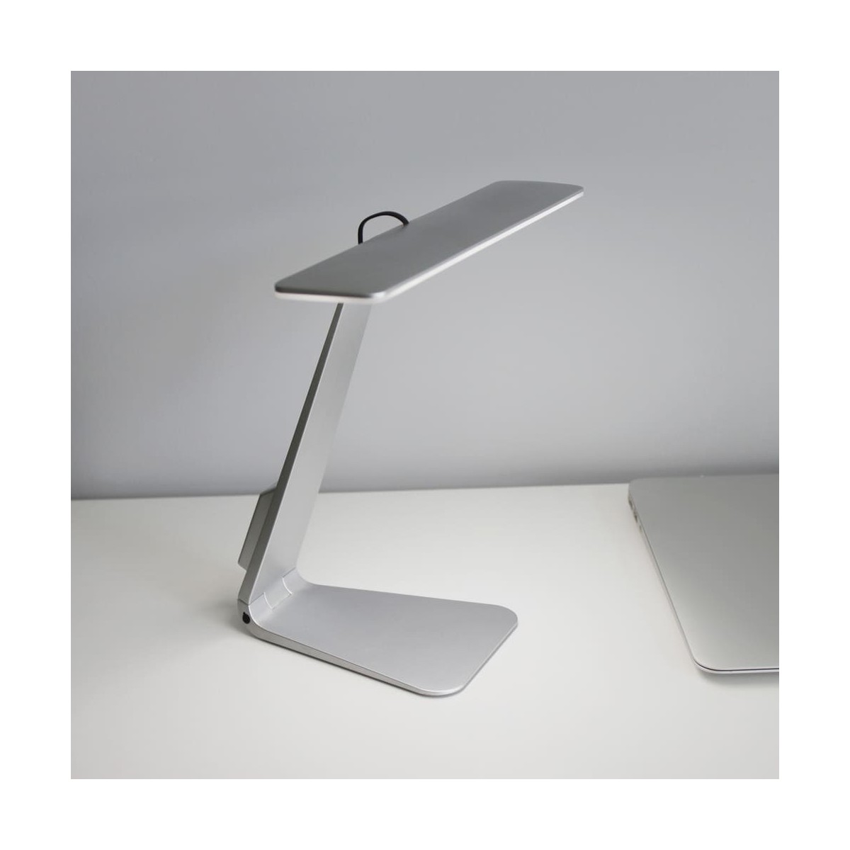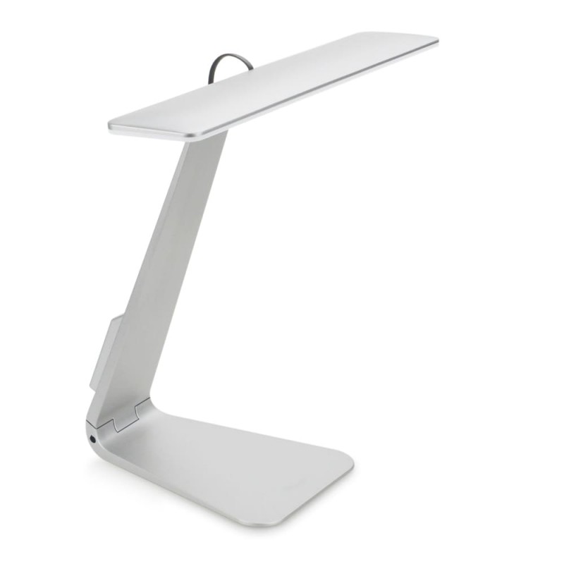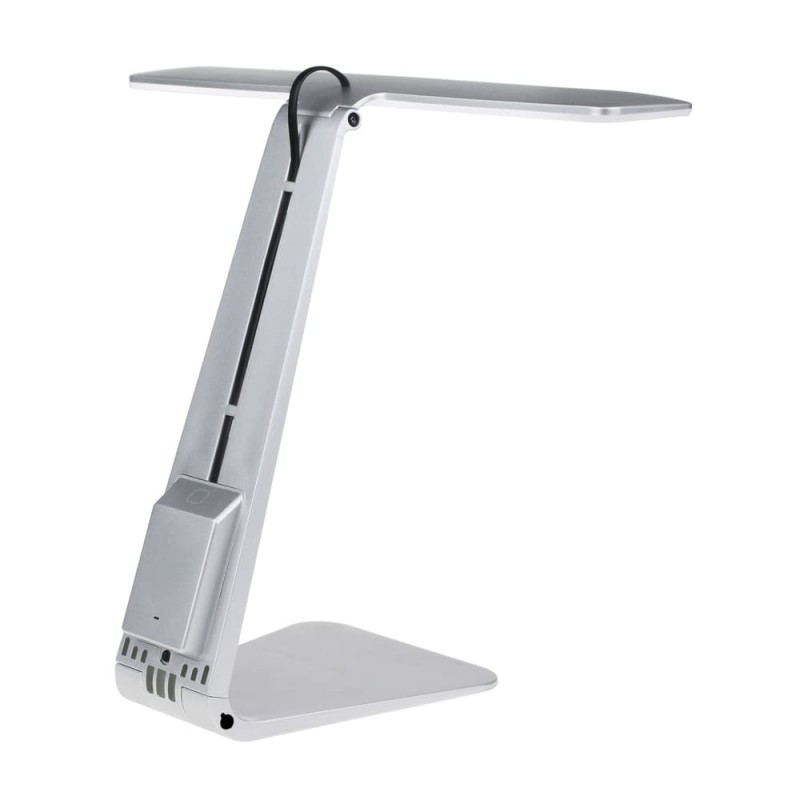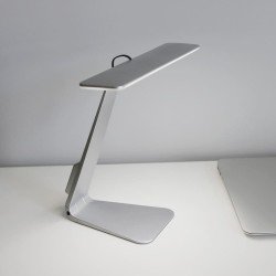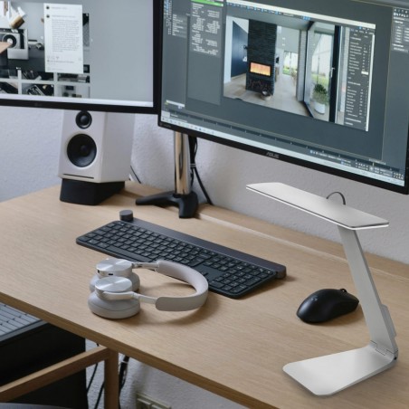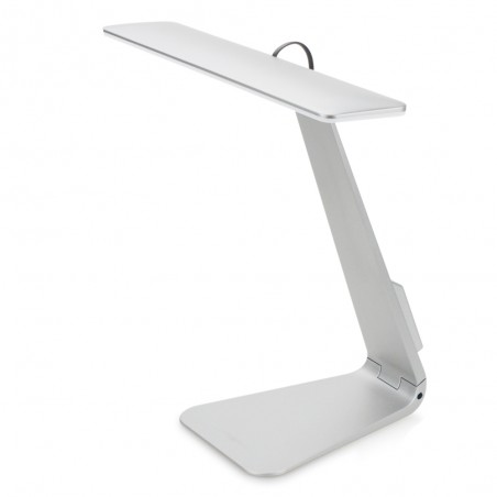 Lampe de bureau avec lumière LED froide pour la lecture et l'étude. Lampe de bureau de style moderne très pratique à utiliser comme lampe de lecture, d'étude ou de travail. Parfaite pour être placée sur un bureau ou une table de travail grâce à son design minimaliste orientable. La lampe est équipée d'un éclairage LED blanc froid (6000K), réglable en intensité lumineuse grâce à un système tactile. Fabriquée en acrylique argenté, ce qui donne une touche moderne au design de la lampe. Batterie rechargeable.