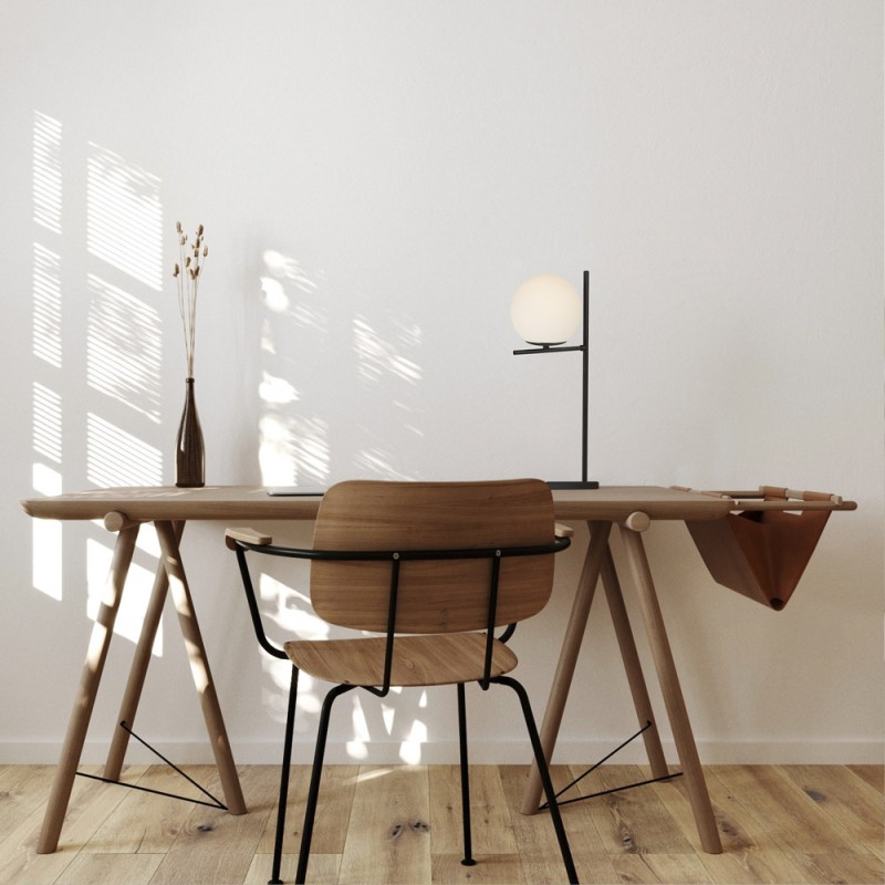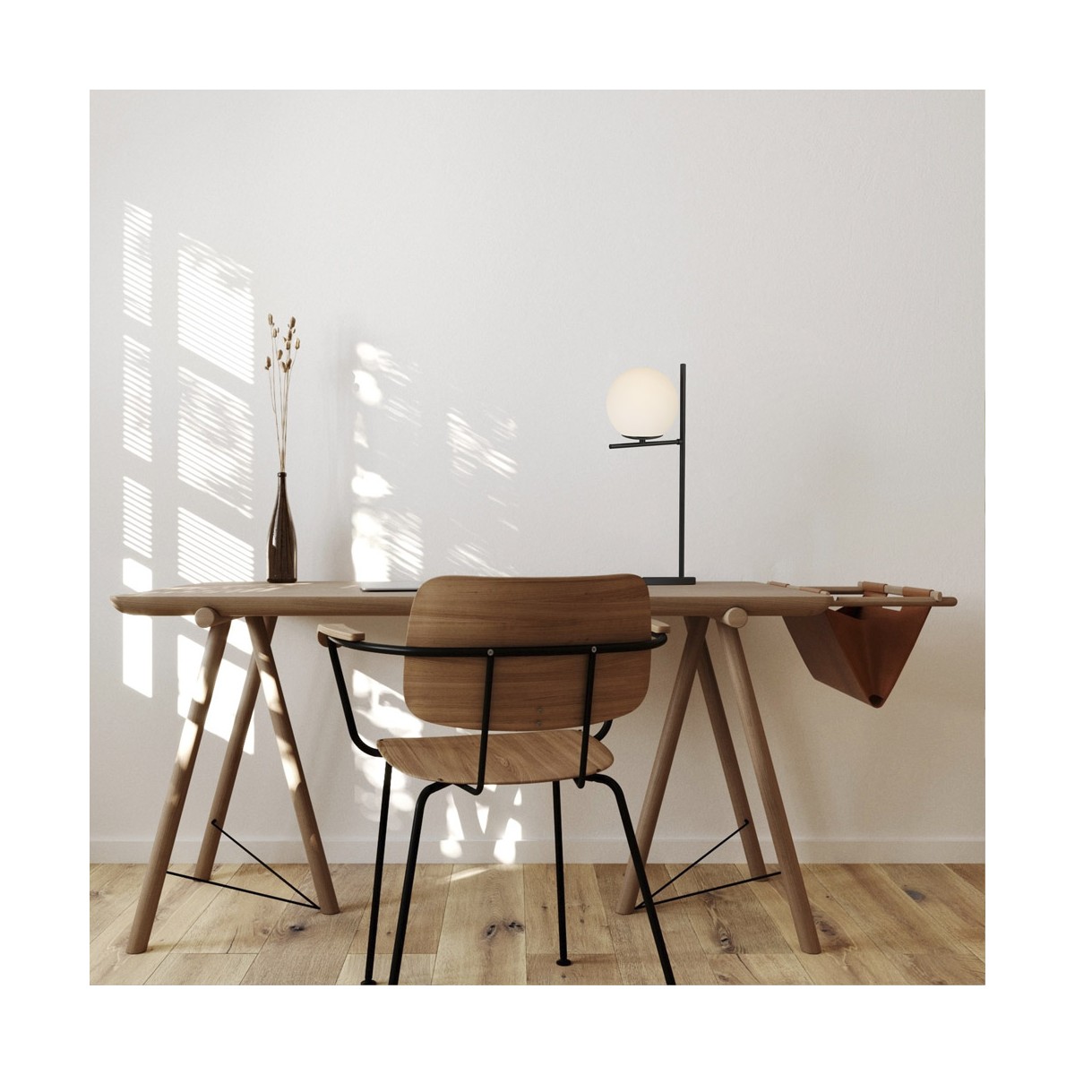 Lampe de table décorative Boston. Lampe de table minimaliste avec structure en métal noir et abat-jour en verre opale en forme de sphère. Idéale pour être placée sur la table de chevet à côté du lit ou sur une table d'appoint dans le salon. Peut contenir une ampoule LED E14.