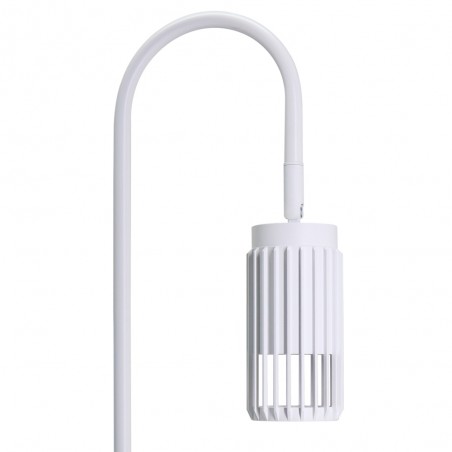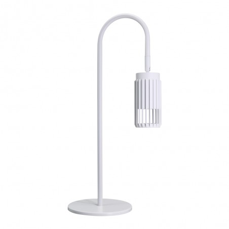 Lampe de table moderne Sahara. Fabriquée en aluminium blanc sablé. Design minimaliste mais innovant avec spot cylindrique en relief et grille semi-ouverte. Idéale pour être placée sur la table de chevet dans la chambre à coucher ou sur une table d'appoint à côté du canapé. Collection de luminaires décoratifs Sahara.