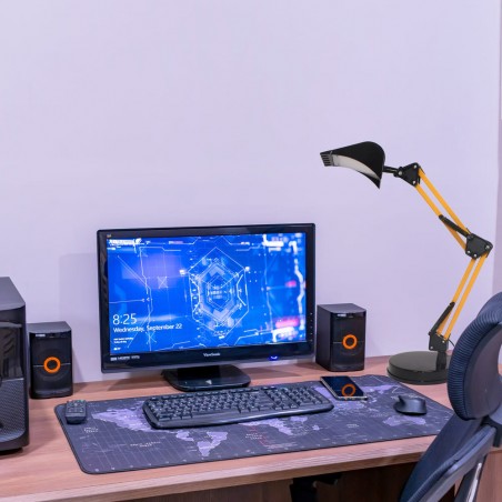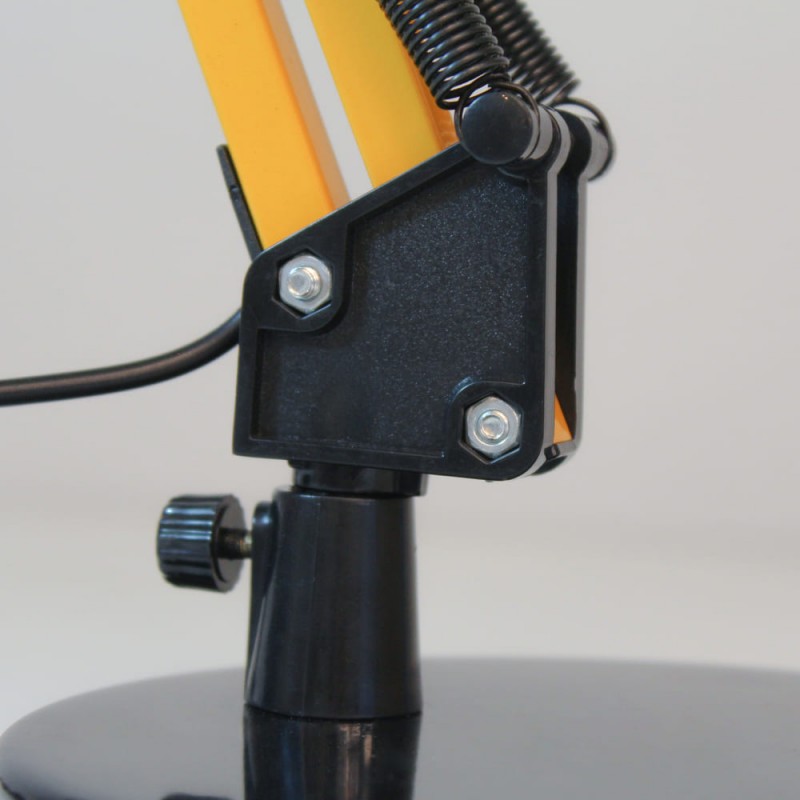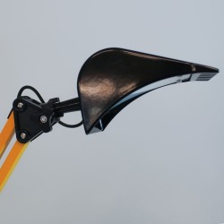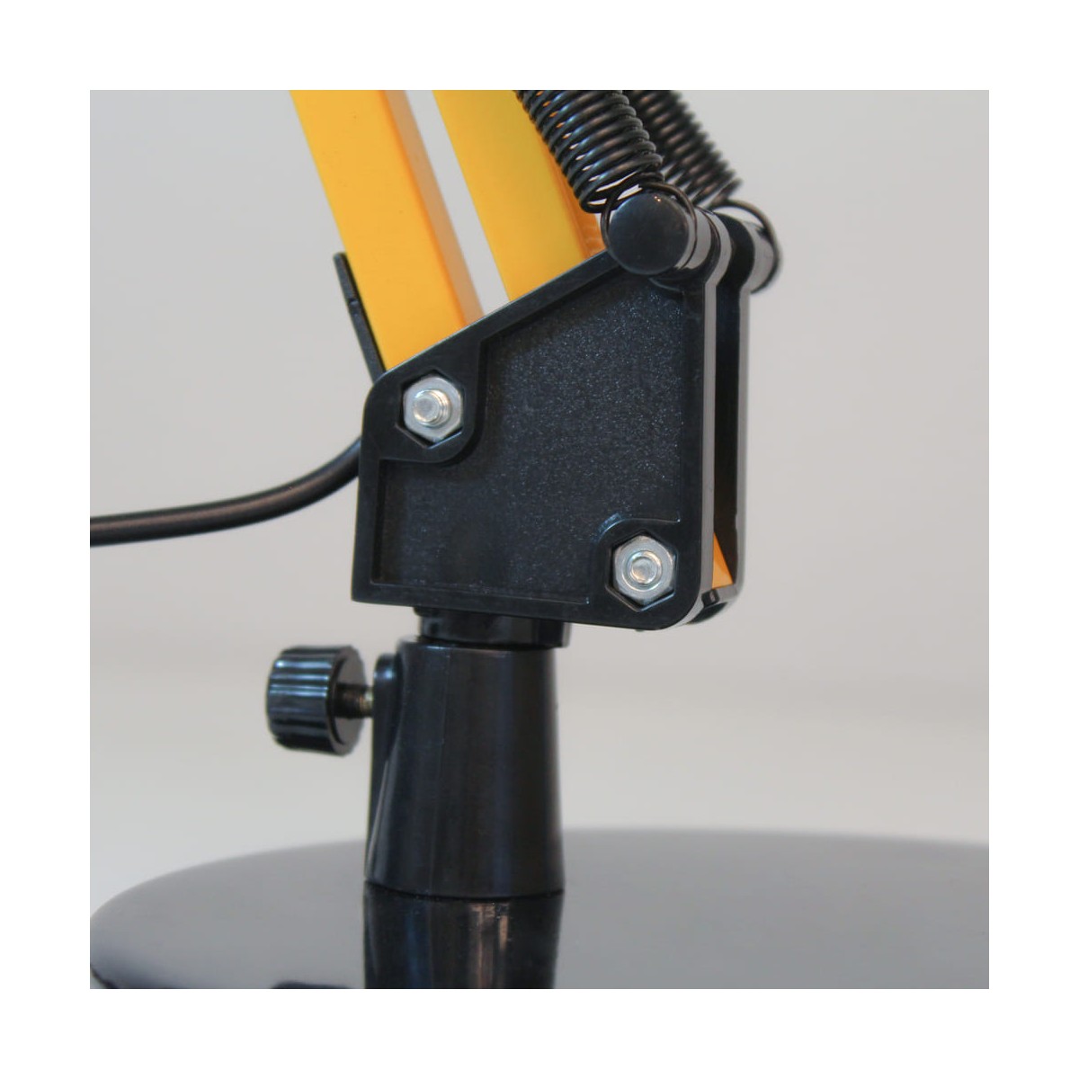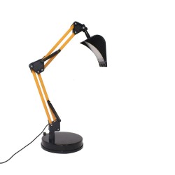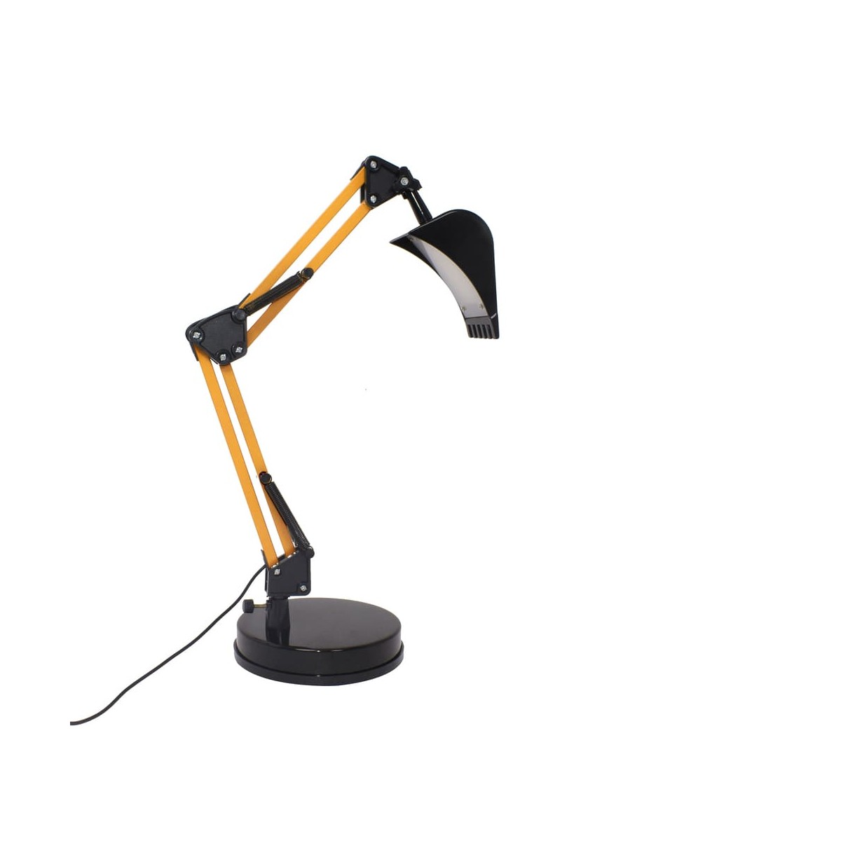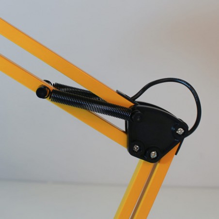 Lampe de bureau à lumière chaude pour les salles de jeunes. Structure articulée et diffuseur réglable pour adapter sa position et la projection de lumière à vos besoins. Lampe de bureau conçu pour être utilisé comme une lumière pour lire, étudier ou travailler. Fabriqué en aluminium orange avec des parties noires. Lumière LED chaude.