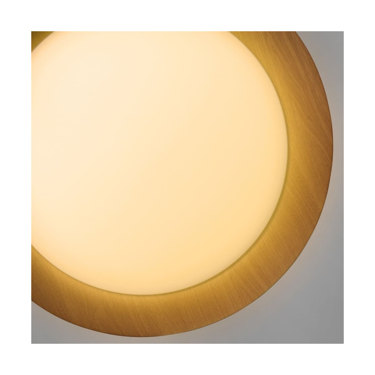 Plafonnier à LED Lili pour les chambres et les salons. Plafonnier circulaire en aluminium blanc avec décoration intérieure effet bois. Son diffuseur circulaire permet de créer un éclairage optimal dans un ton chaud pour l'illumination d'une pièce. Plafonnier circulaire de style nordique combinant la couleur blanche et l'imitation du bois.