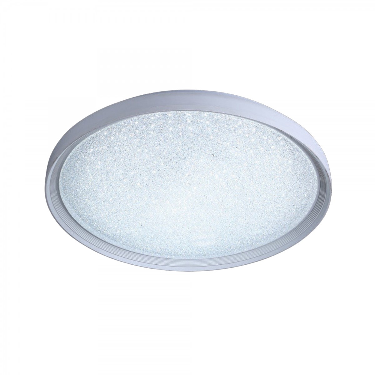 Plafonnier lumineux de 40W, 2800LM. Structure en métal, verre et acrylique. Il comprend une télécommande qui permet de changer la température (3000K/4500K/6000K) et de régler l'intensité lumineuse. Driver inclus.