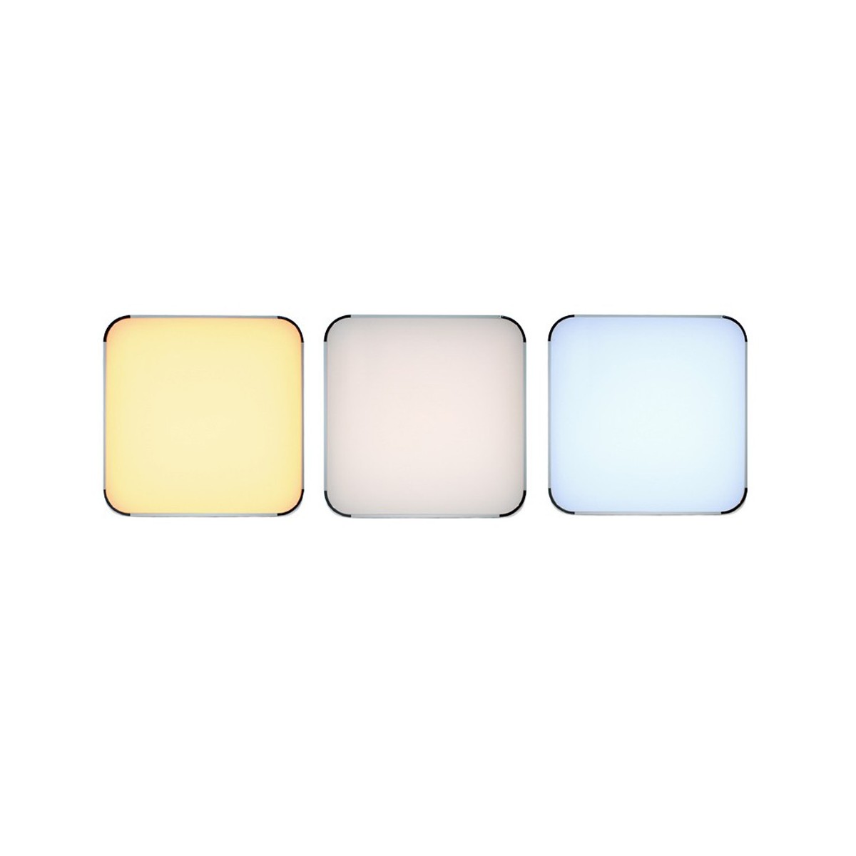 Plafonnier à Led, d'une puissance de 24W Graduable, changement de température 3000K/4500K/6500K. Comprend une télécommande pour régler la lumière. Structure en aluminium et PMMA de 450x450x120mm