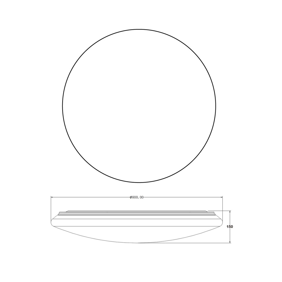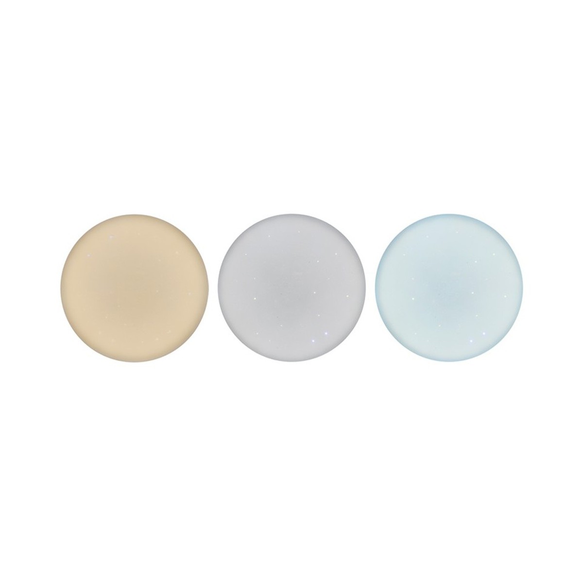 Plafonnier avec éclairage Led intégré de 100W, dimmable, avec 3 températures. Diffuseur rond de 800mm avec effet d'étoile en acrylique. Comprend une télécommande.